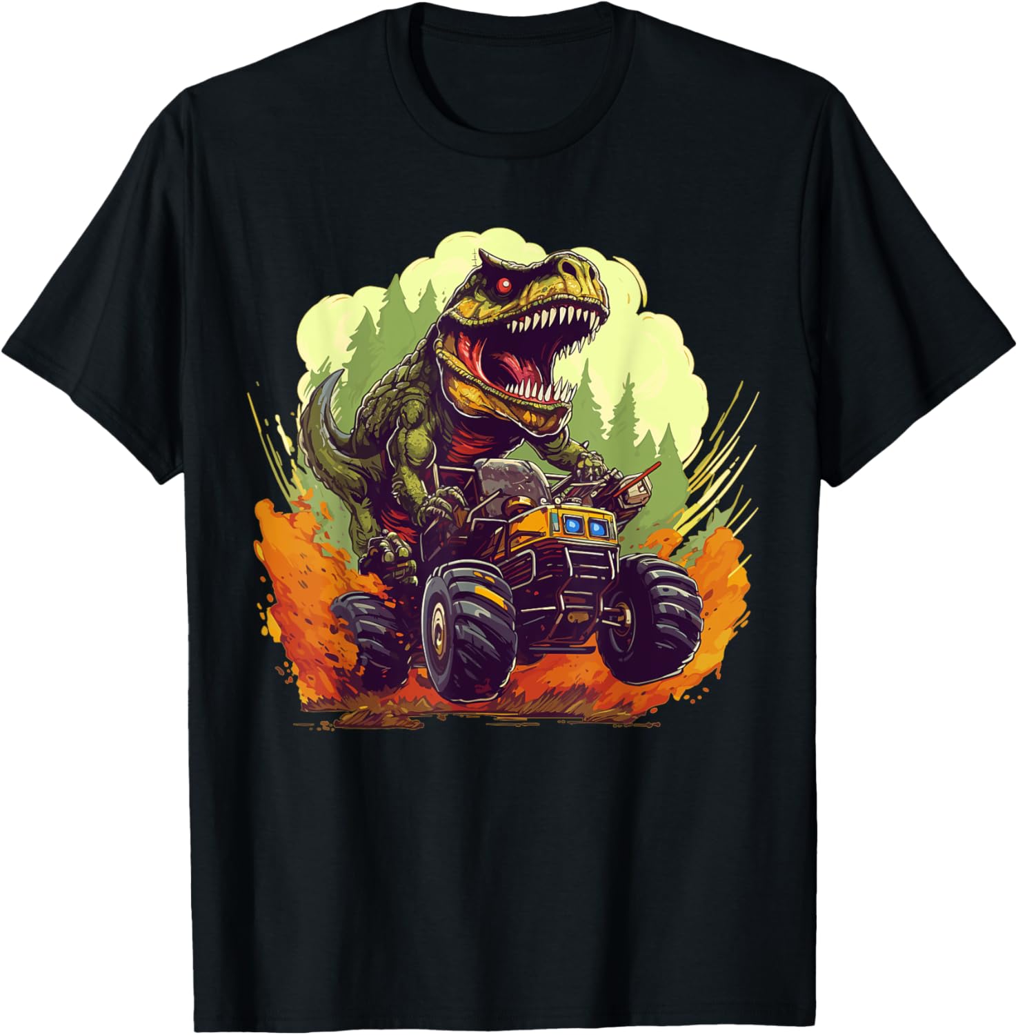 Dinosaur TRex Riding an ATV ORV All Terrain On Dirt Road T-Shirt