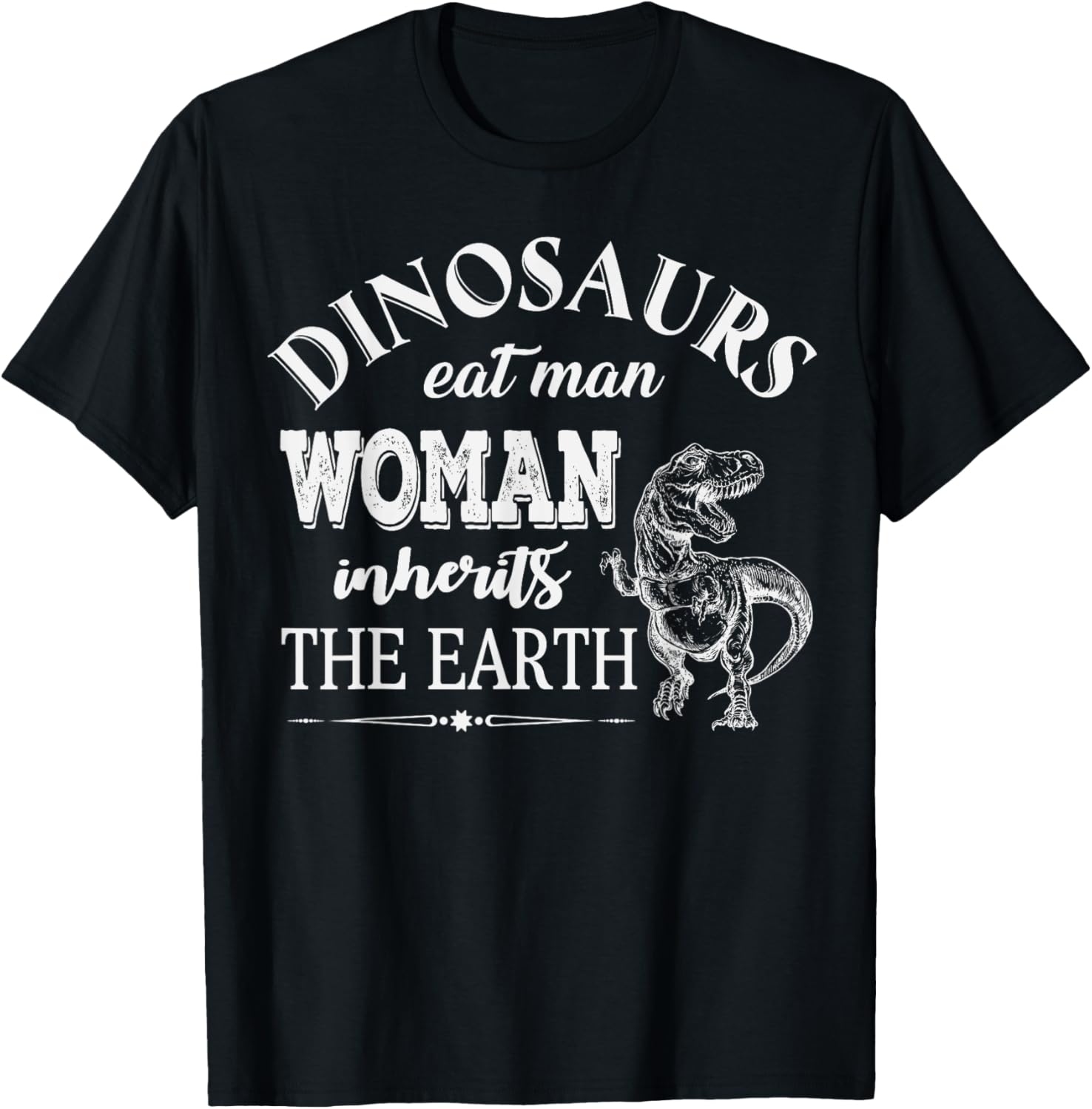 Dinosaurs Eat Man Woman Inherits The Earth Funny T-Shirt
