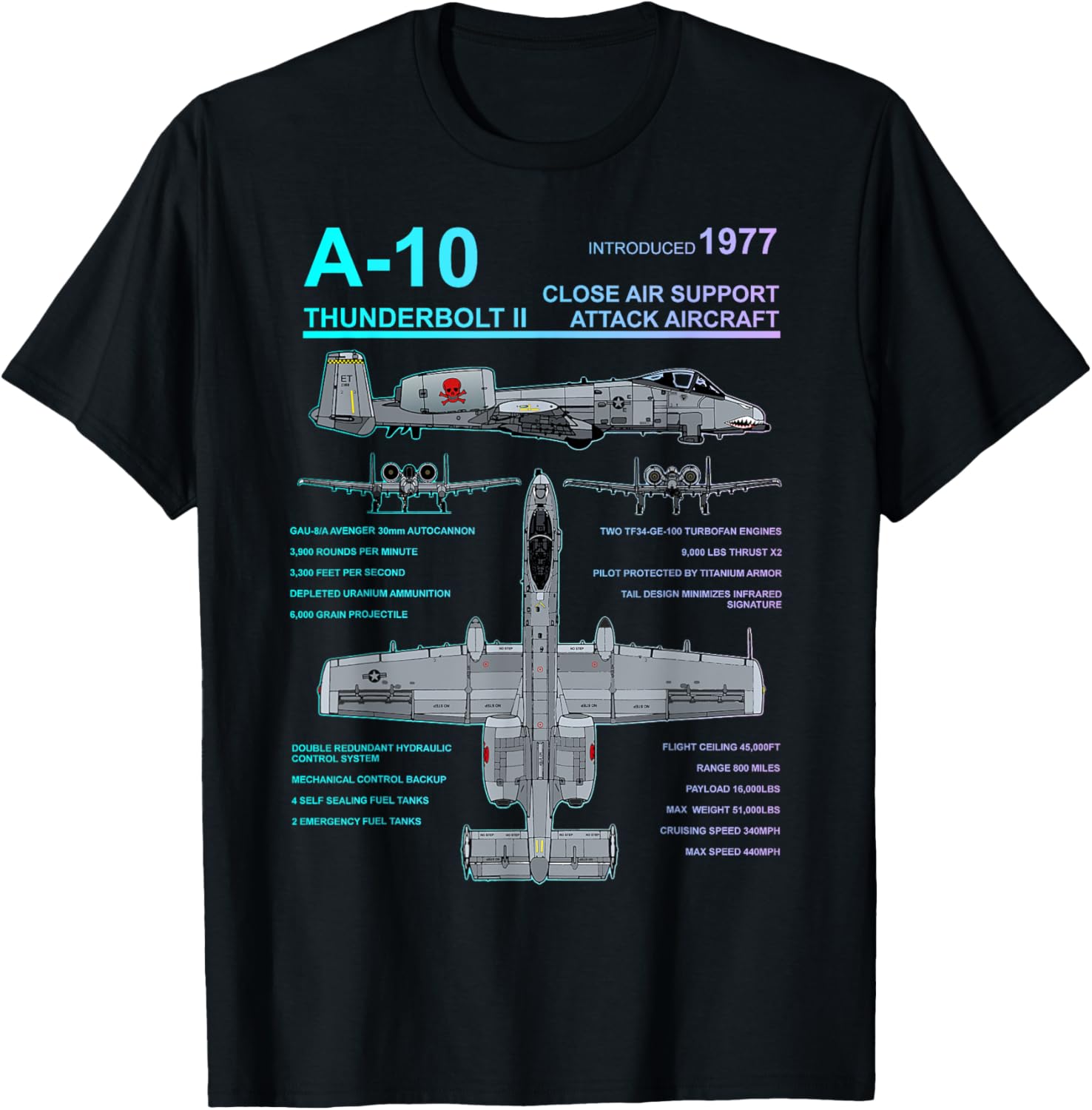 Dinosaurus Rekx A-10 Thunderbolt II Warthog Military Jet Blueprint T-Shirt, Small, Black