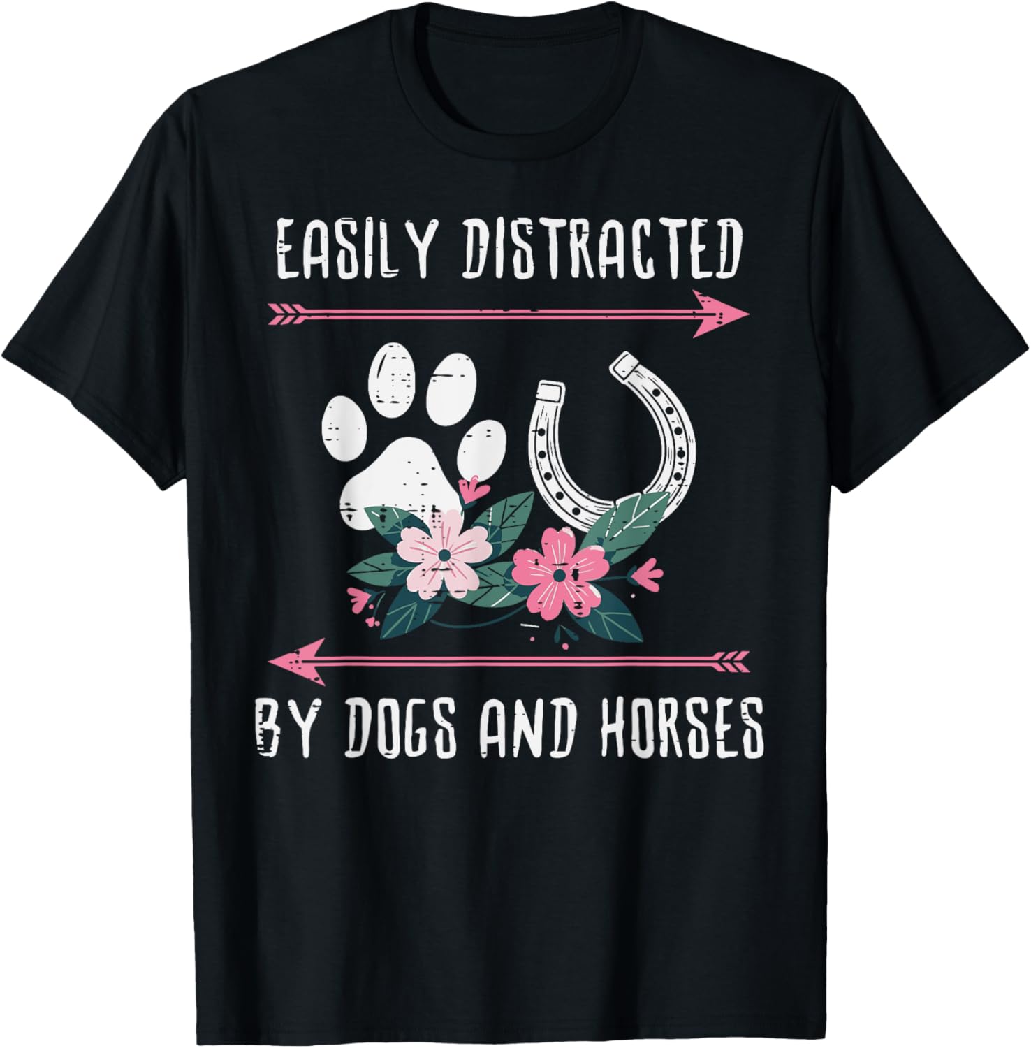 Easily Distracted Dogs Horses Equestrian Women Girls Kids T-Shirt