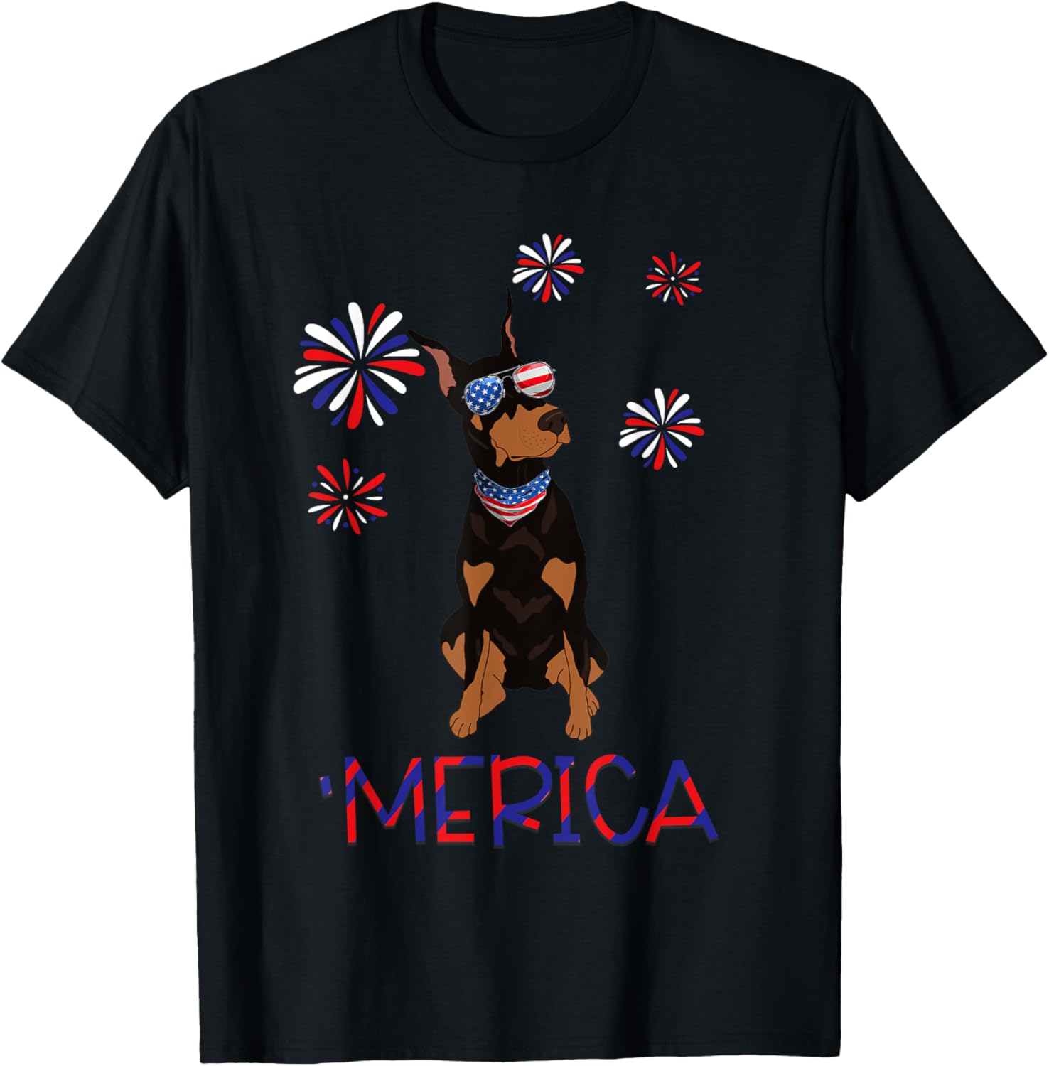 Black And Tan Doberman 'Merica Patriot Dog Lover 4th Of July T-Shirt