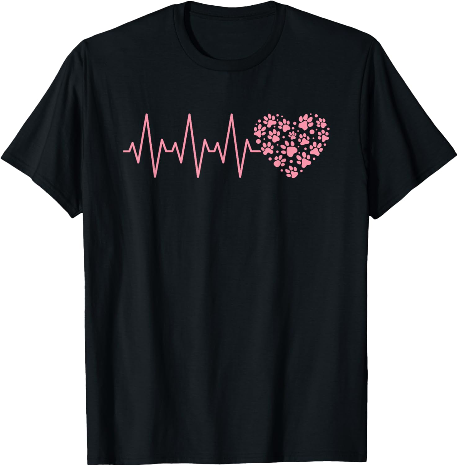 Cute Pink Dog Heartbeat Dog Paw Dog Lover Dog Heart T-Shirt