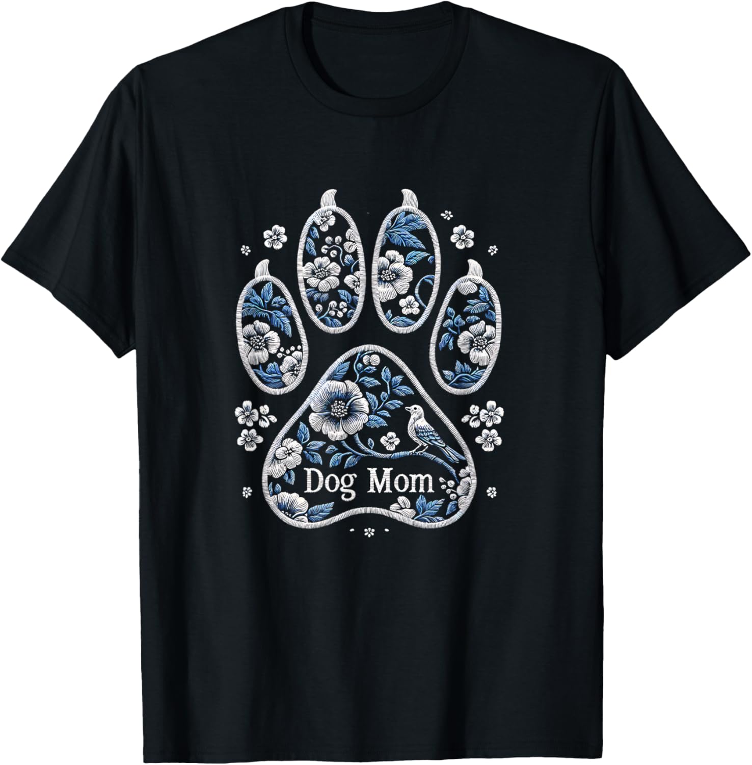 Dog Mom Floral Paw Print – Vintage Embroidered Style look T-Shirt