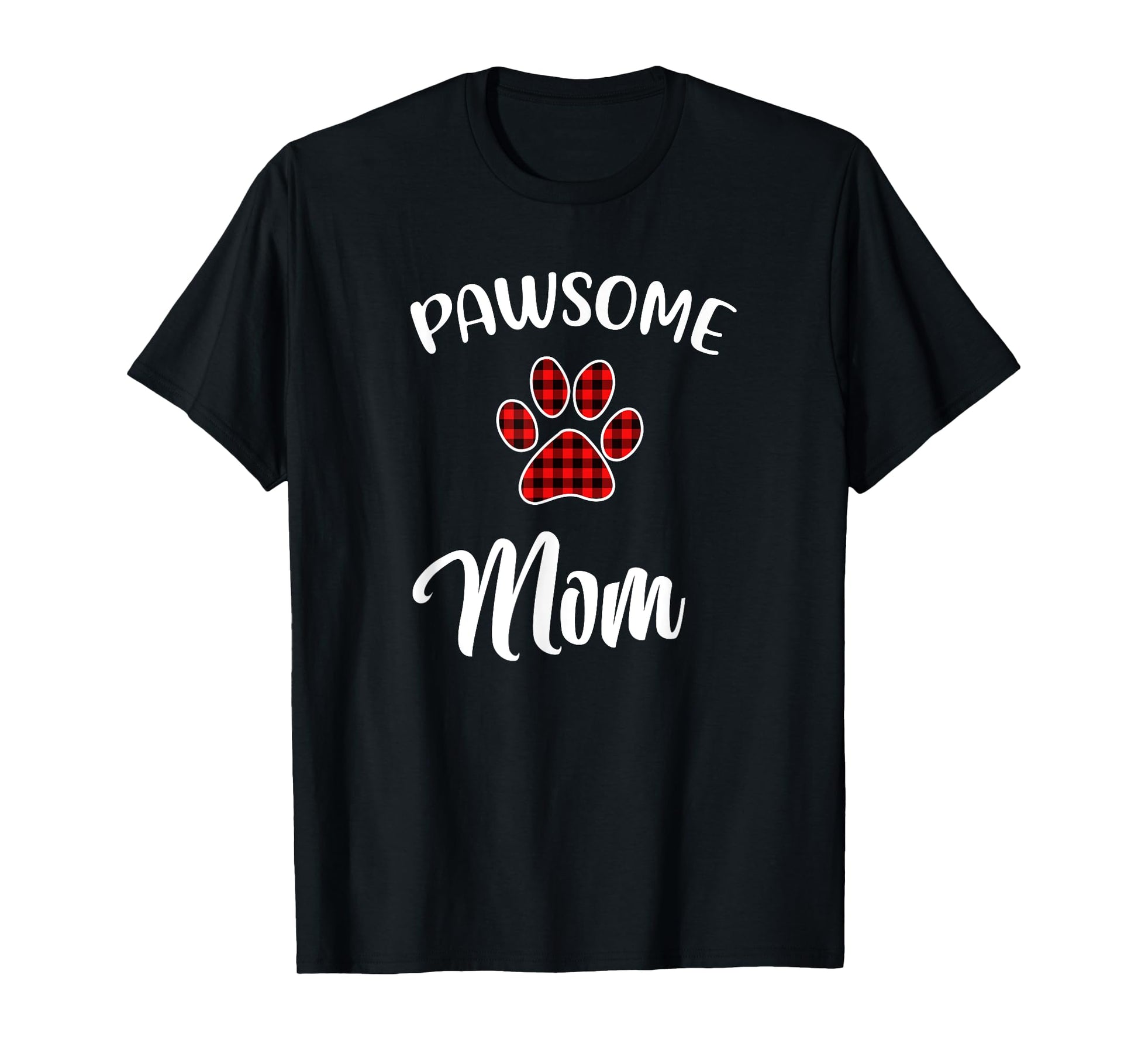 Dog Mom Paw Print Red Buffalo Plaid Matching Pajama Men Women T-Shirt