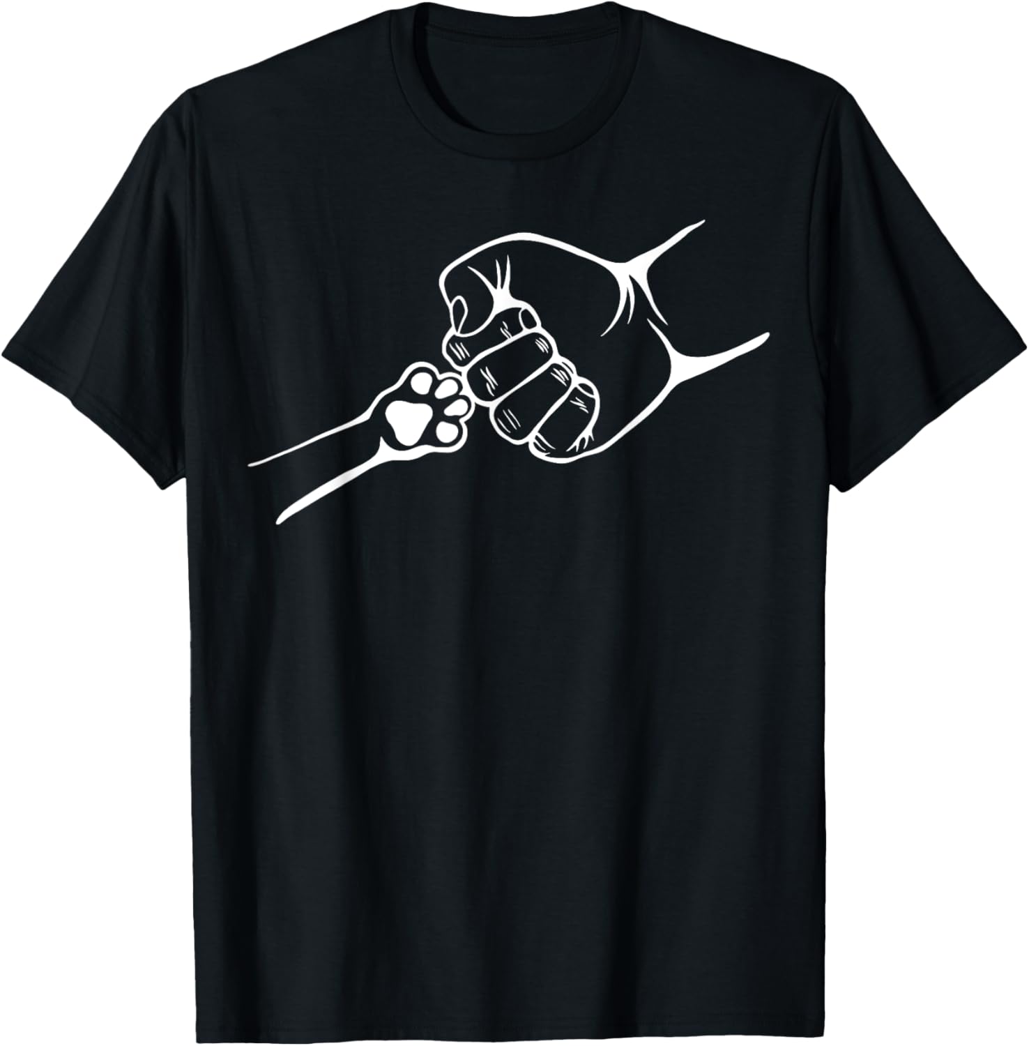 Dog And People Punch Hand Dog Man Friendship Bump Dog's Paw T-Shirt