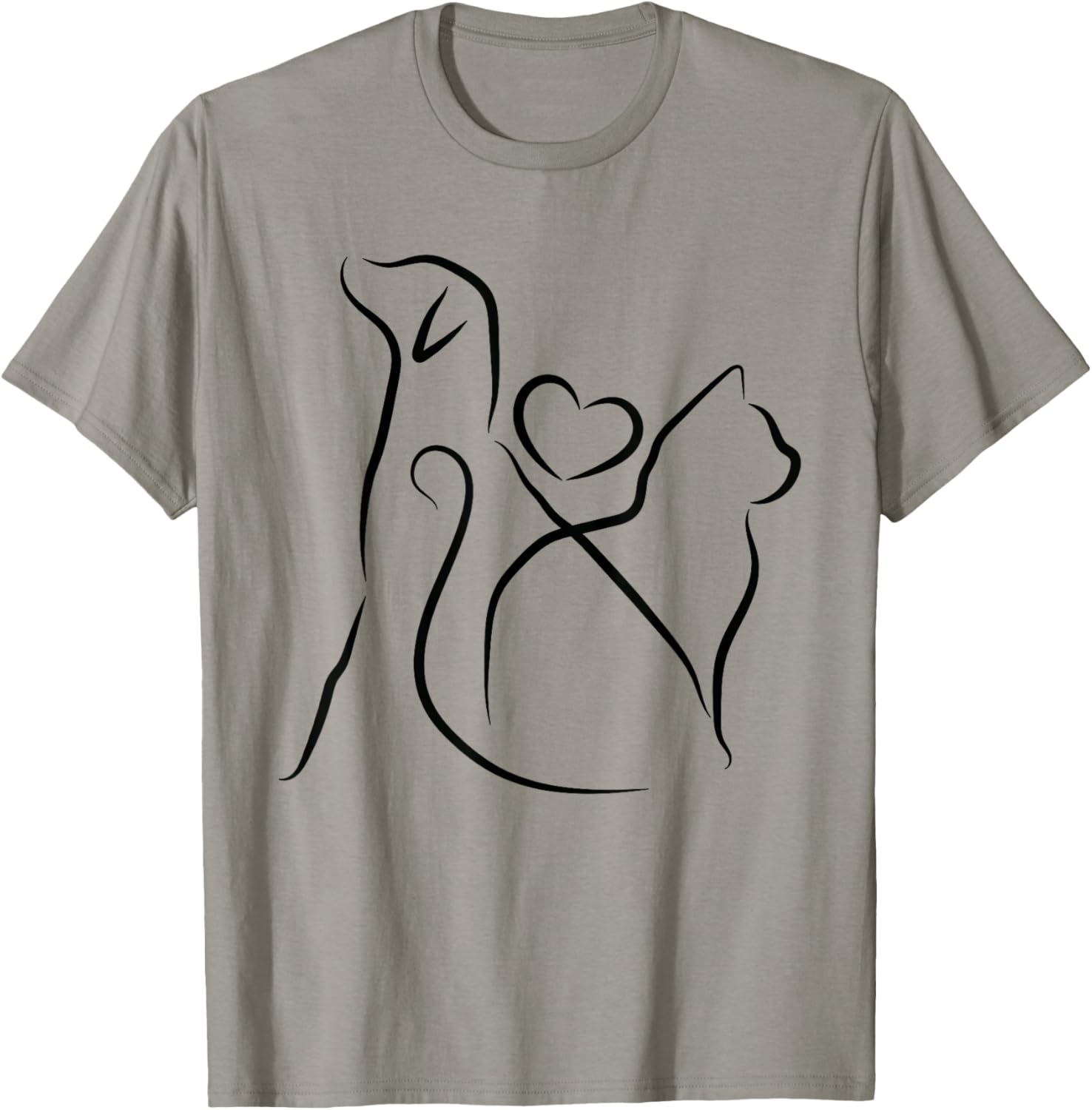 Dog Puppy and Baby Cat Heart - Animal Dog & Cat Heart T-Shirt