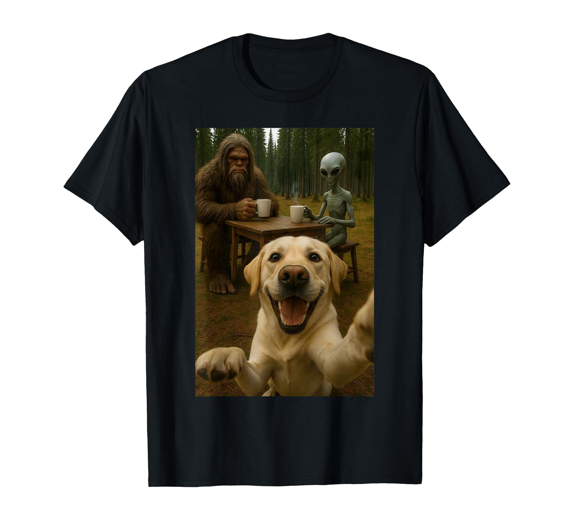 Dog Selfie With Bigfoot Alien Funny T-Shirt