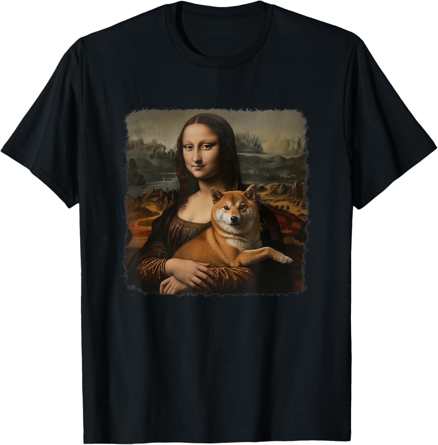 Mona Lisa With with Dog Funny Shiba Inu Art Painting T-Shirt