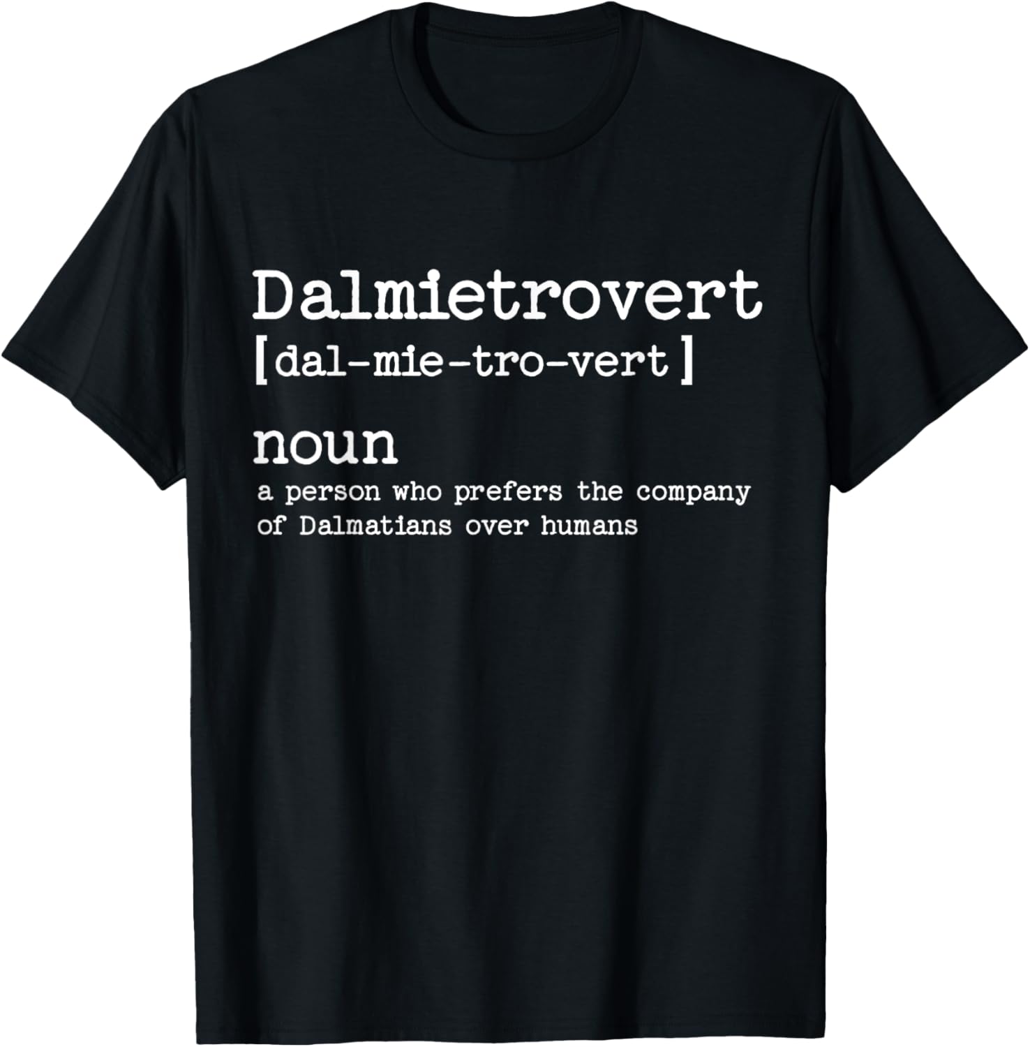 Unisex-Adults, Unisex-Kids Black Casual Short Sleeve T-Shirt Funny Dalmatian Dog Letter Print