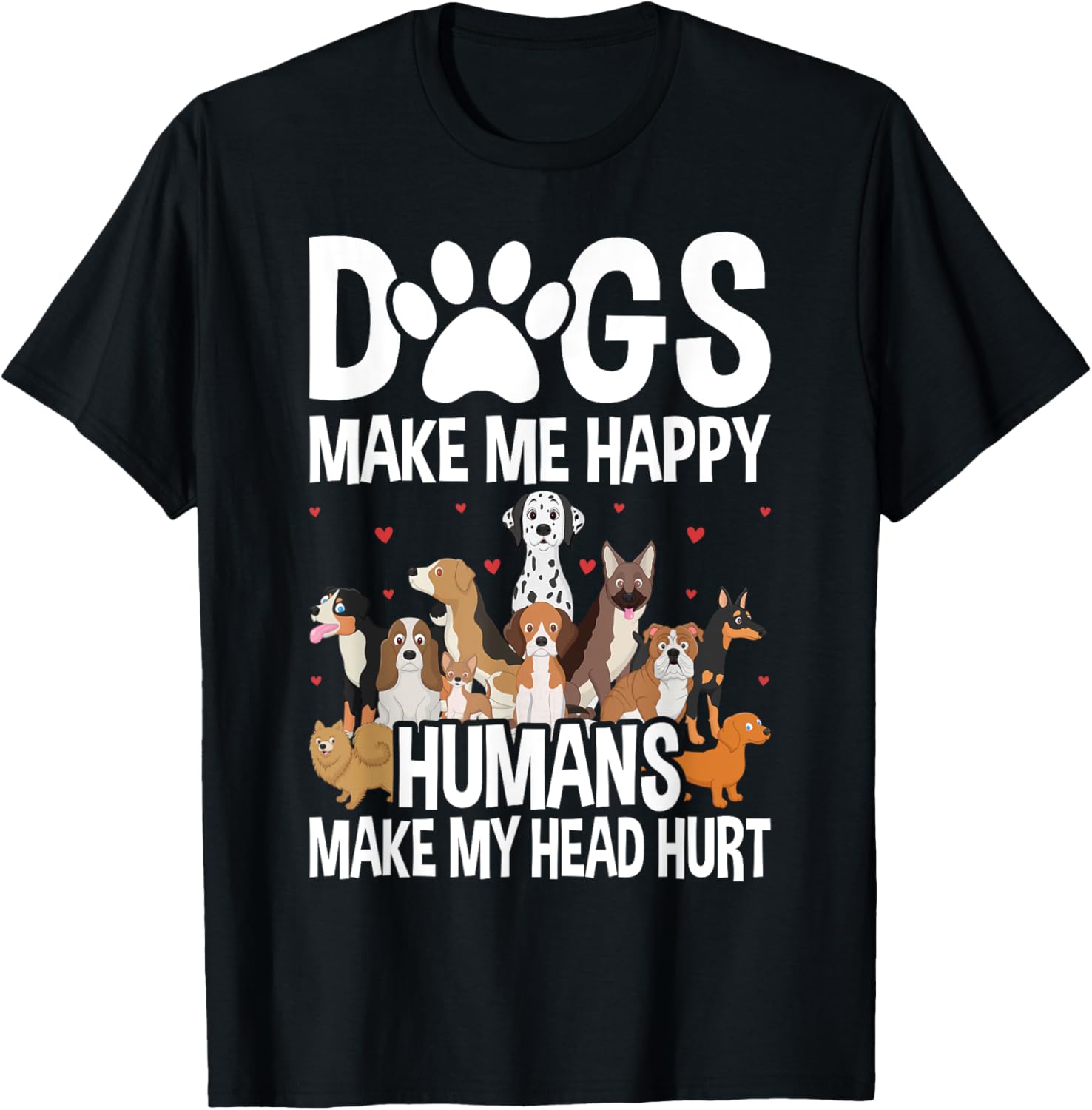 Dogs Make Happy Humans Make My Head Hurt Funny T-Shirt
