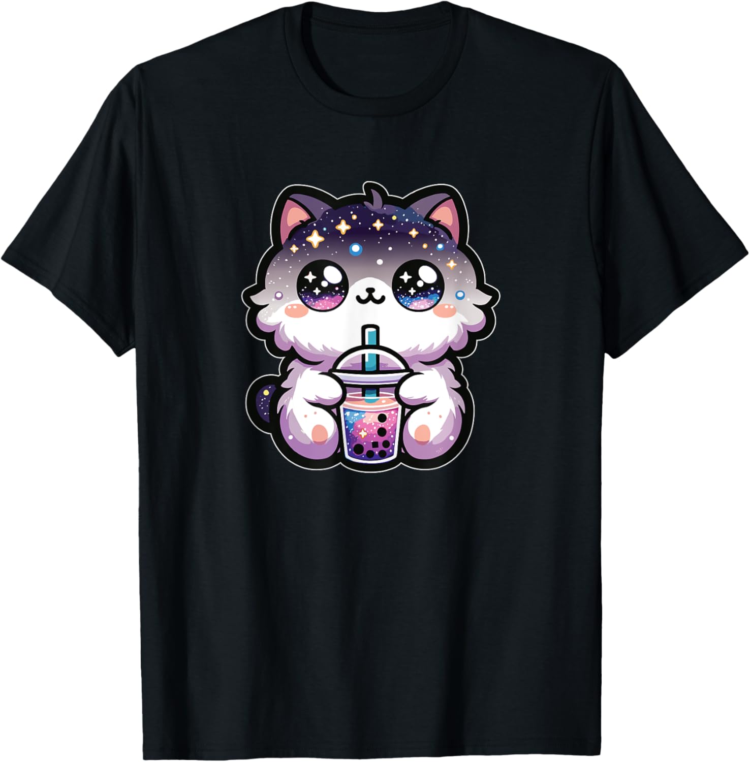Cats Drink Bubble Tea Kawaii Galaxy Boba Cat T-Shirt