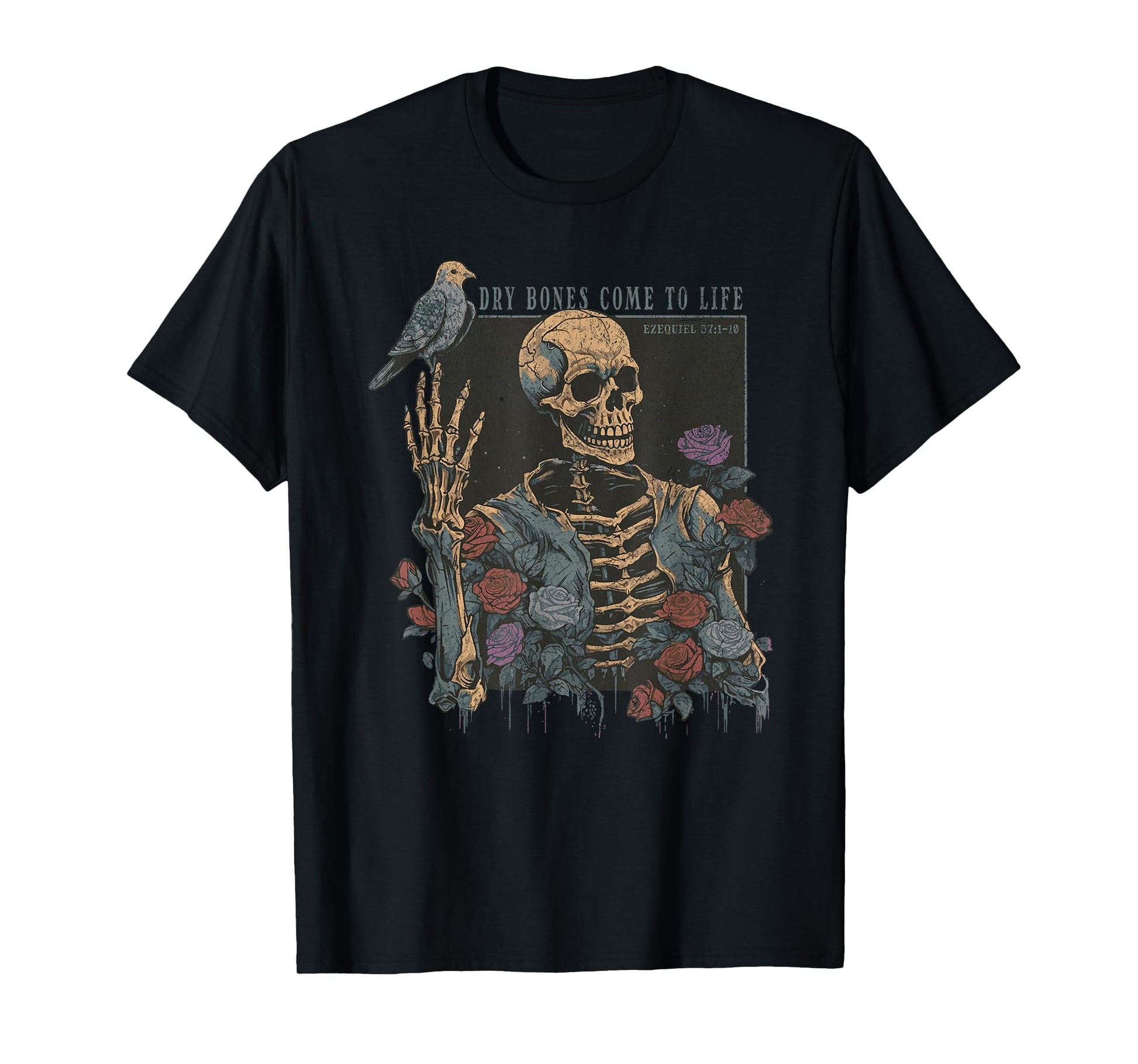 Dry Bones Come to Life Skeleton Bird Flower Nature Halloween T-Shirt