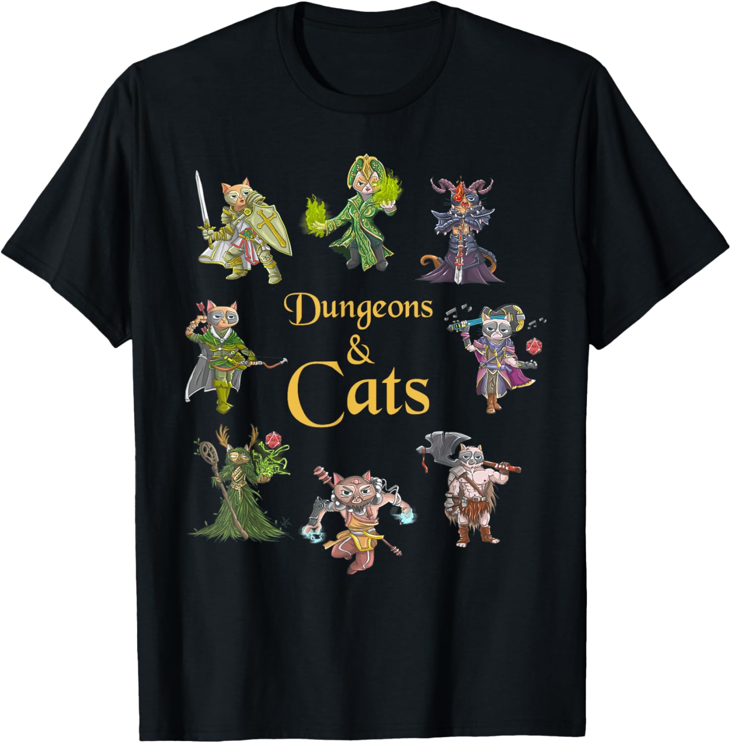 Dungeons And Cats Funny Cute Tabletop Gaming Geek Roleplay T-Shirt