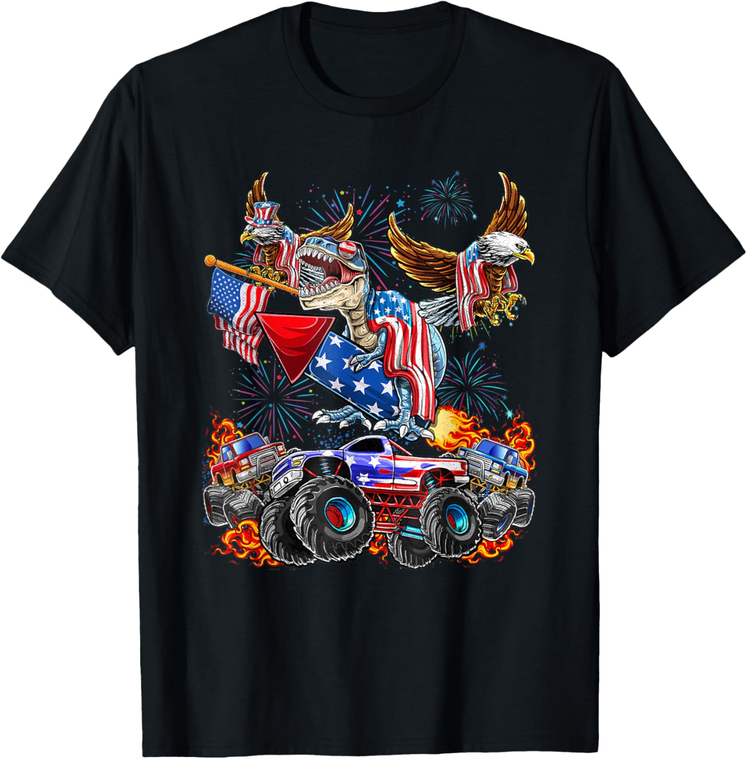 Eagle Monster Truck Dinosaur July 4th America Patriotic USA T-Shirt