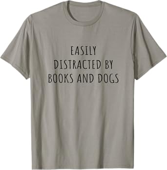 Easily Distracted By Books And Dogs T-Shirt - Easily Distracted By - Unisex-Adults - Grey - Small - Short Sleeve - T-Shirt