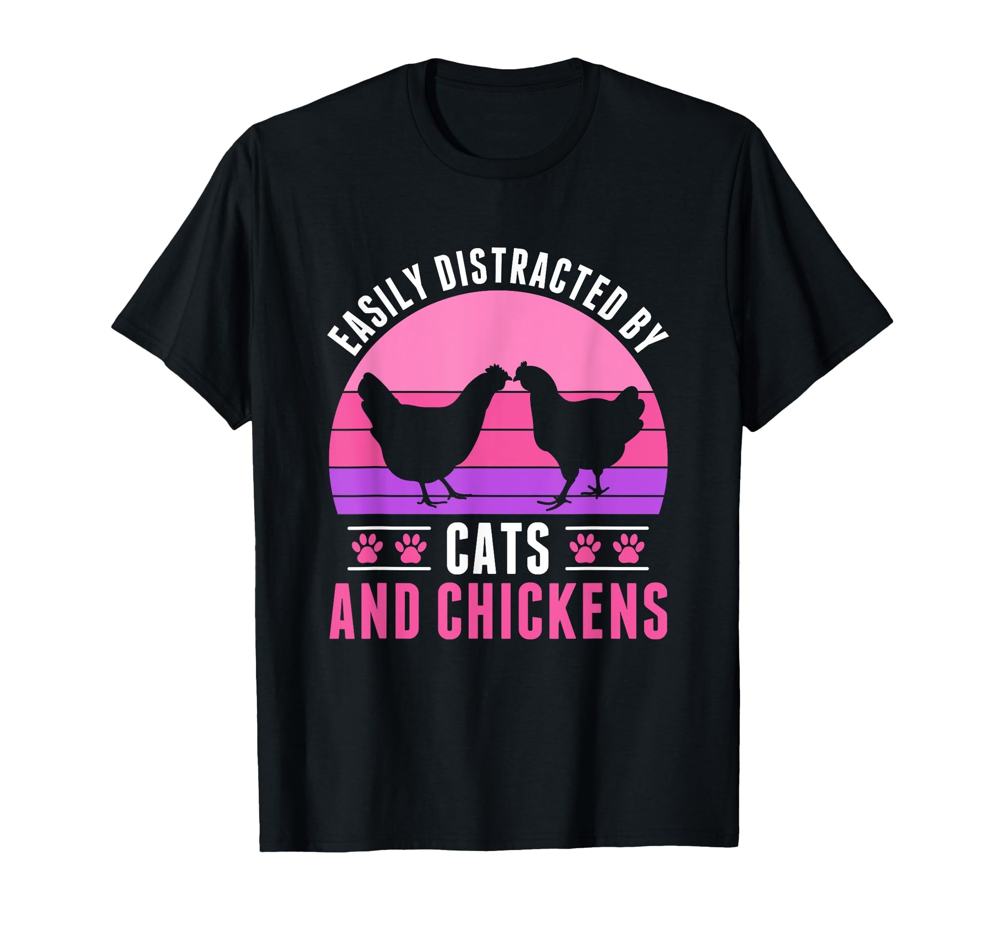 Easily Distracted by Chickens and Cats Chicken Farmer T-Shirt