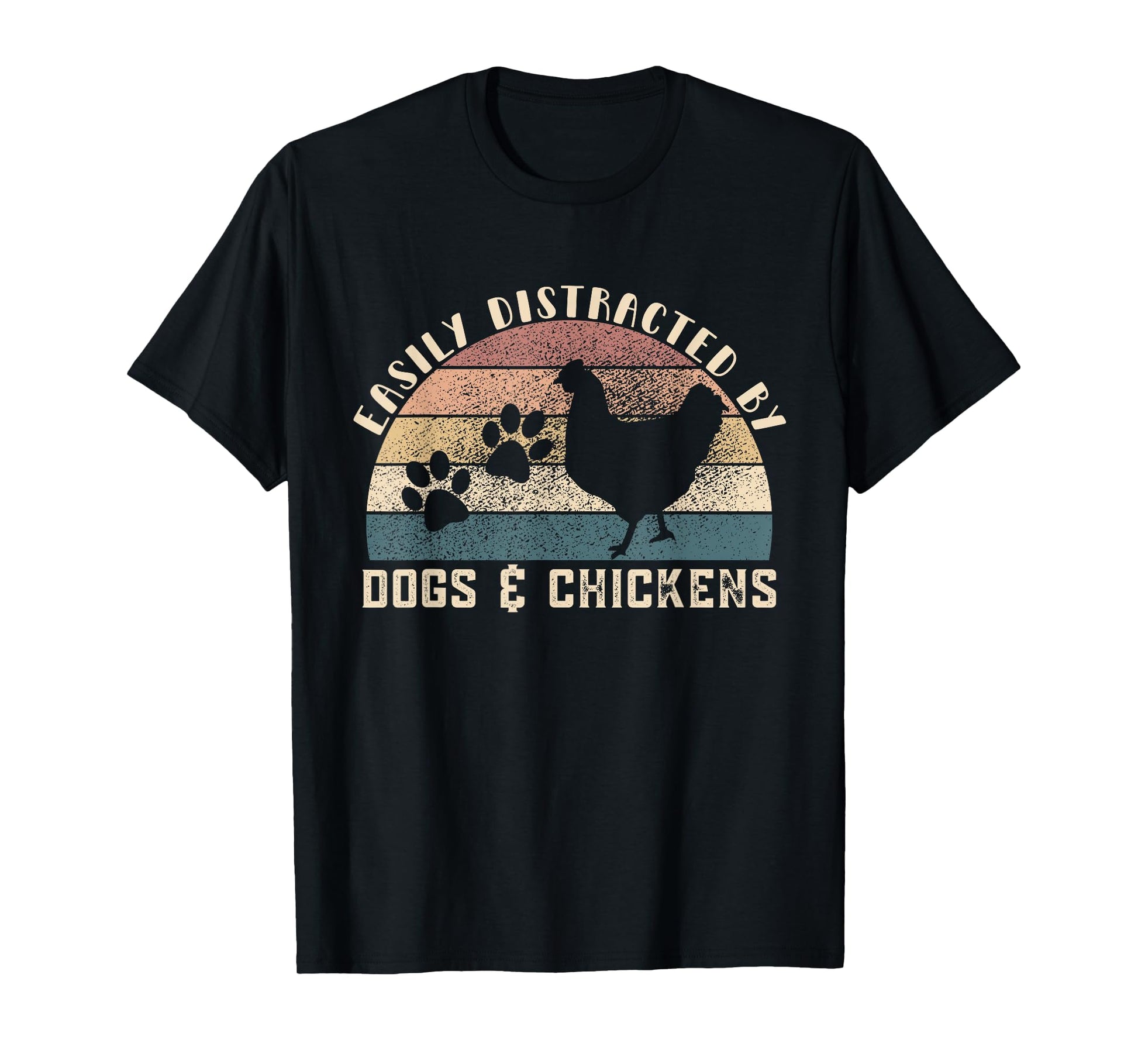 Easily Distracted By Dogs Chickens Retro Funny Chicken Dog T-Shirt