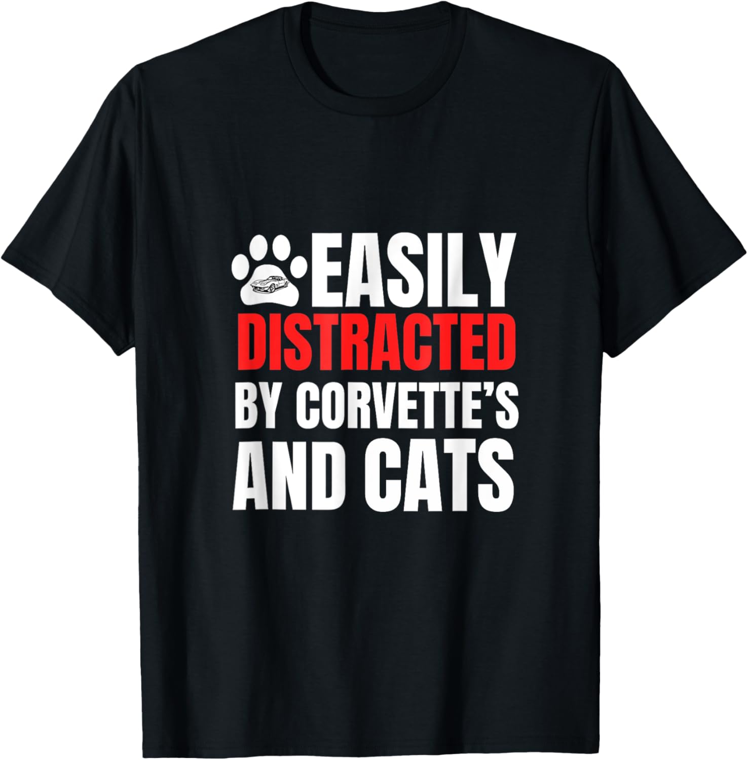 Easily Distracted by Corvette's and Cat's Funny T-Shirt