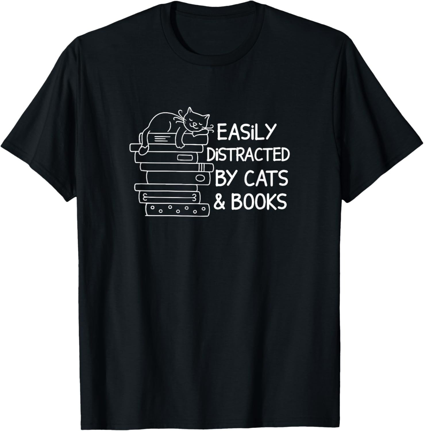 Easily Distracted By Cats And Books, Book Lover, Funny Cat T-Shirt