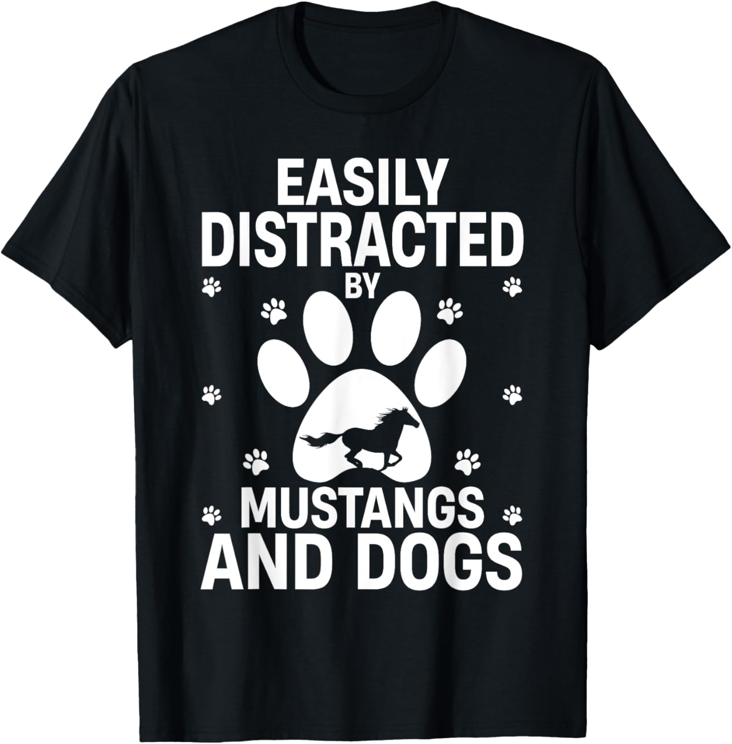 Easily Distracted by Mustangs and Dogs Funny T-Shirt