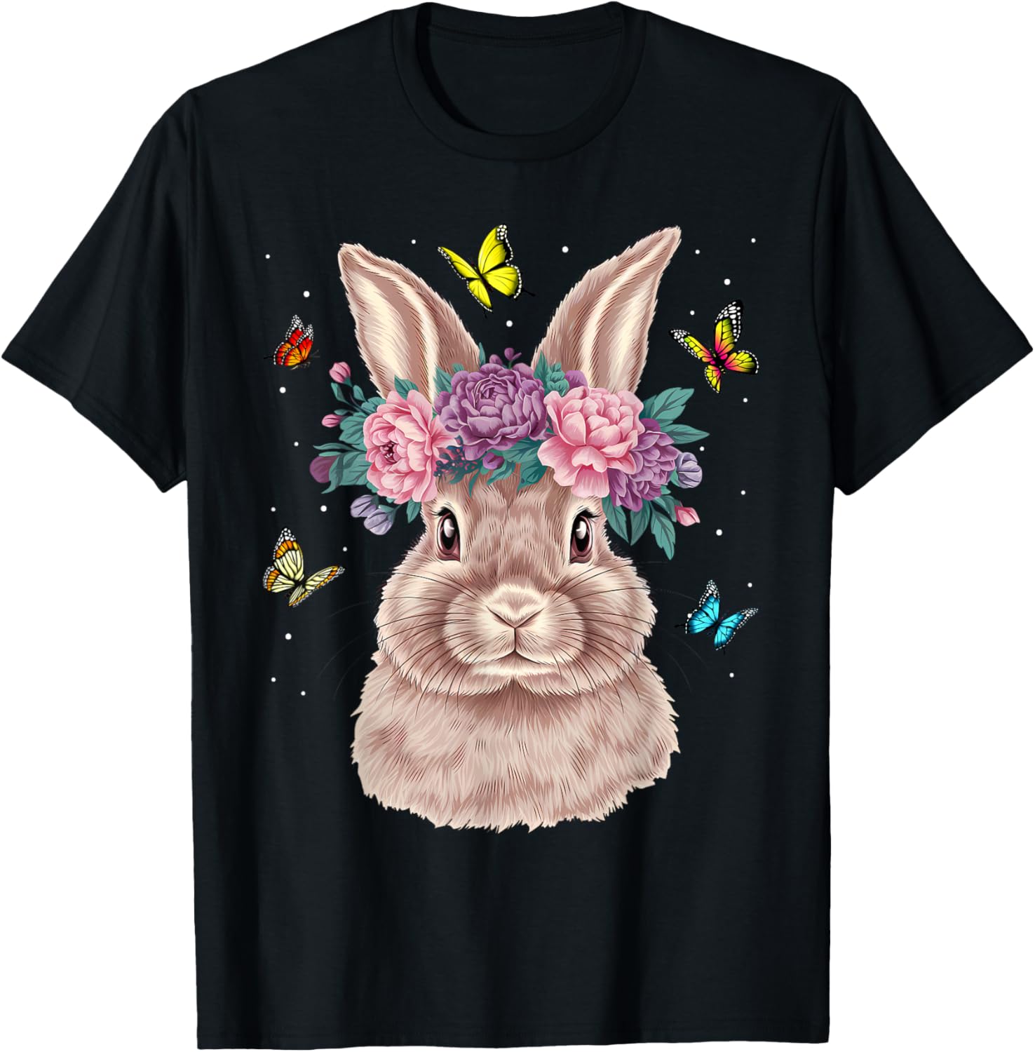 Easter Bunny Rabbit Women - Happy Bunny Flower Graphic Girls T-Shirt