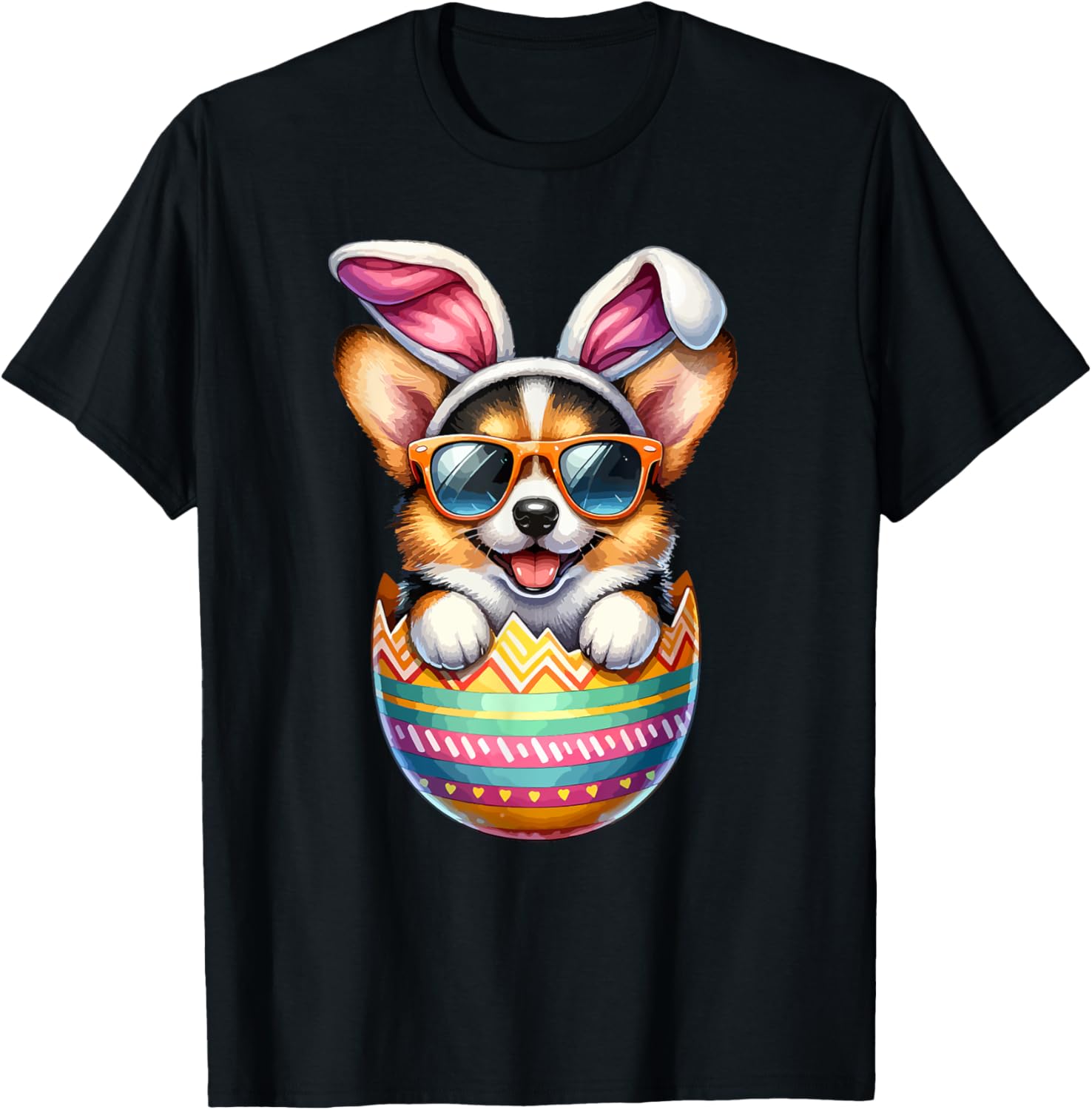 Cute Pembroke Welsh Corgi Egg Easter Day Dog Dad Dog Mom T-Shirt