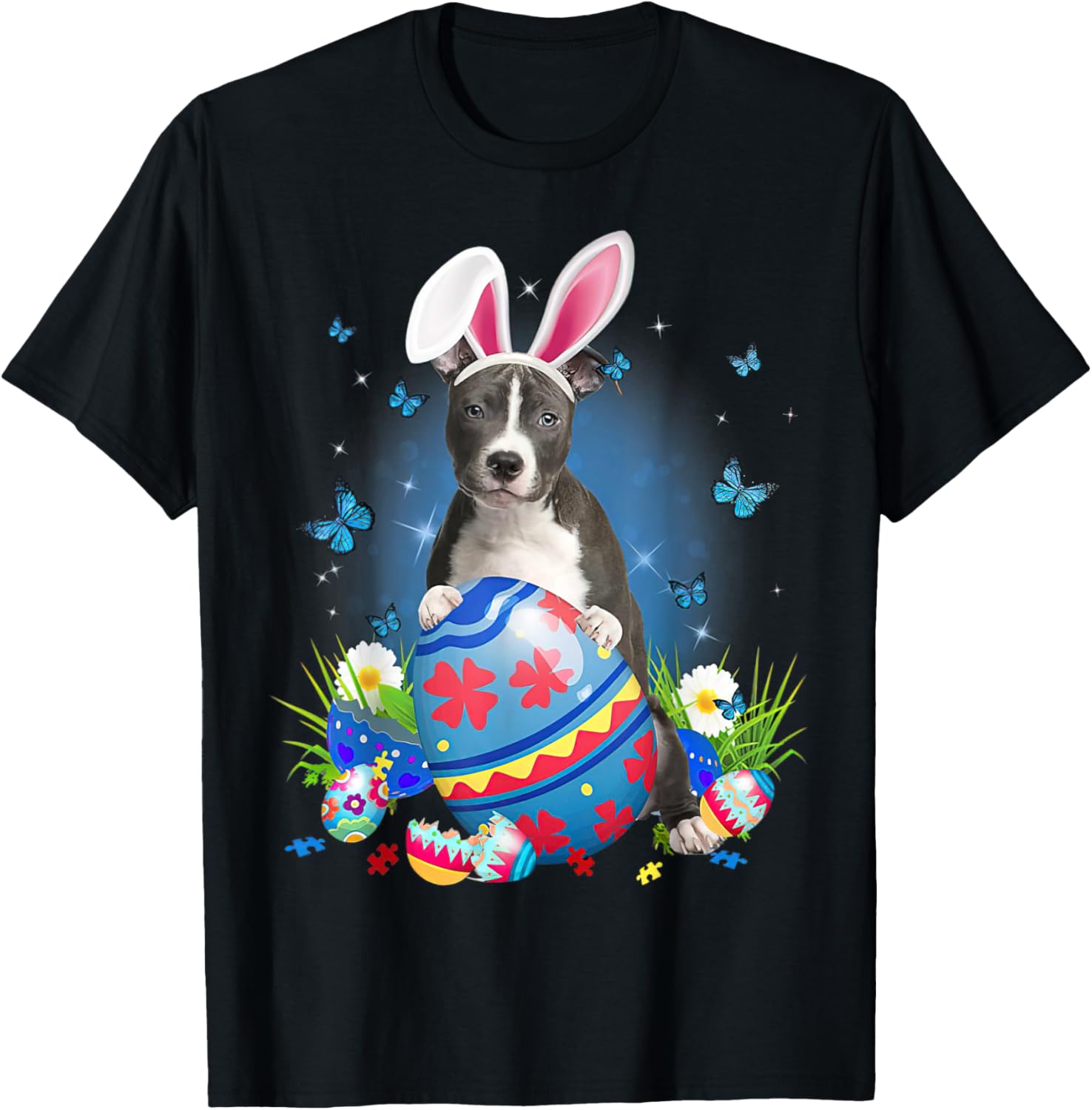 Easter Cute Pitbull Dog Lover Bunny Eggs Easter T-Shirt