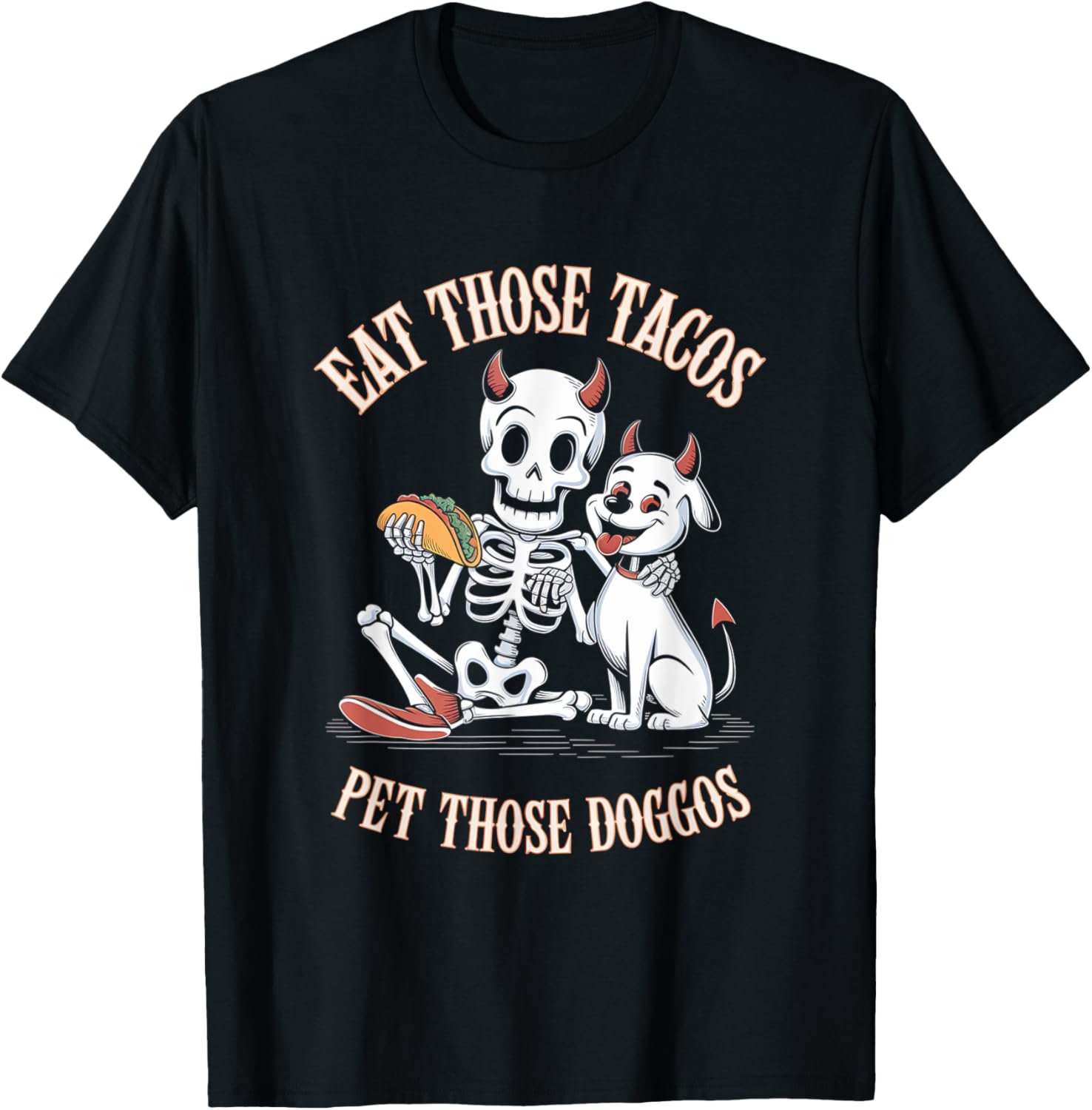 Funny Quote Eat Tacos Pet Doggos Skeleton Dog Lovers Fun T-Shirt