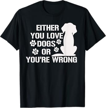 Either You Love Dogs Or You're Wrong Pet Humor Animal Lovers T-Shirt
