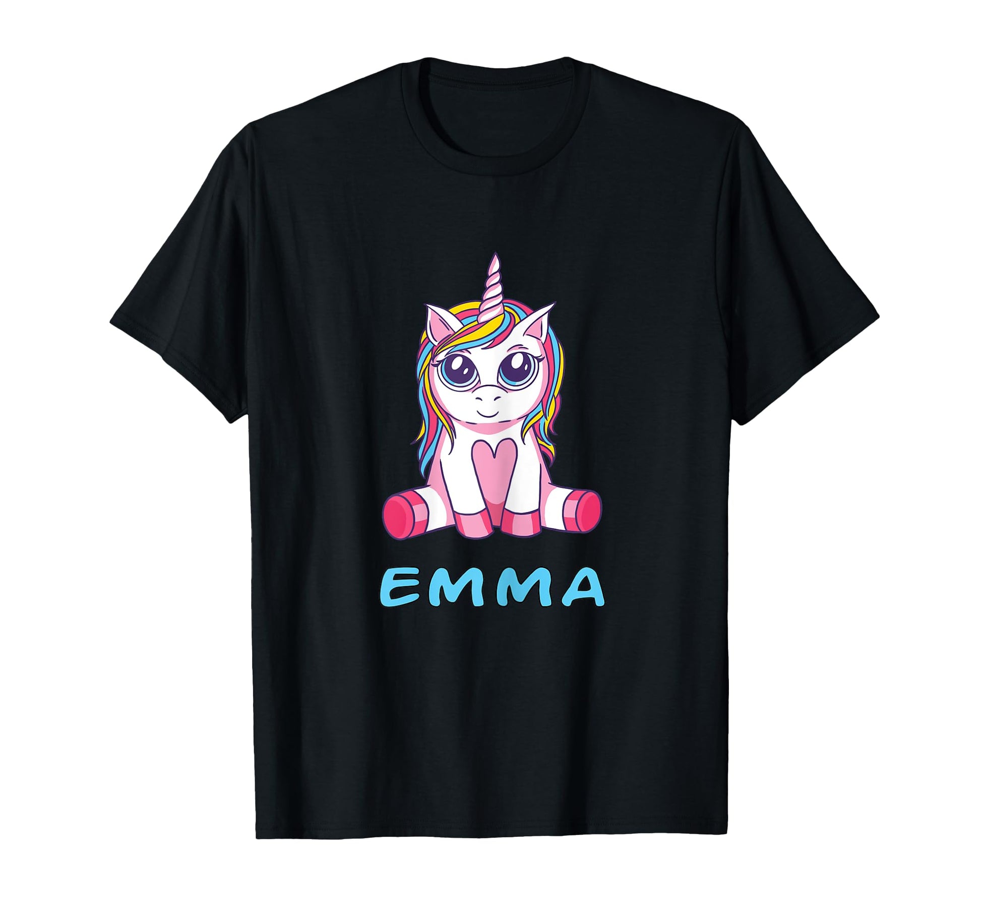Emma unicorn name baby child girl sits cute toddler T-Shirt