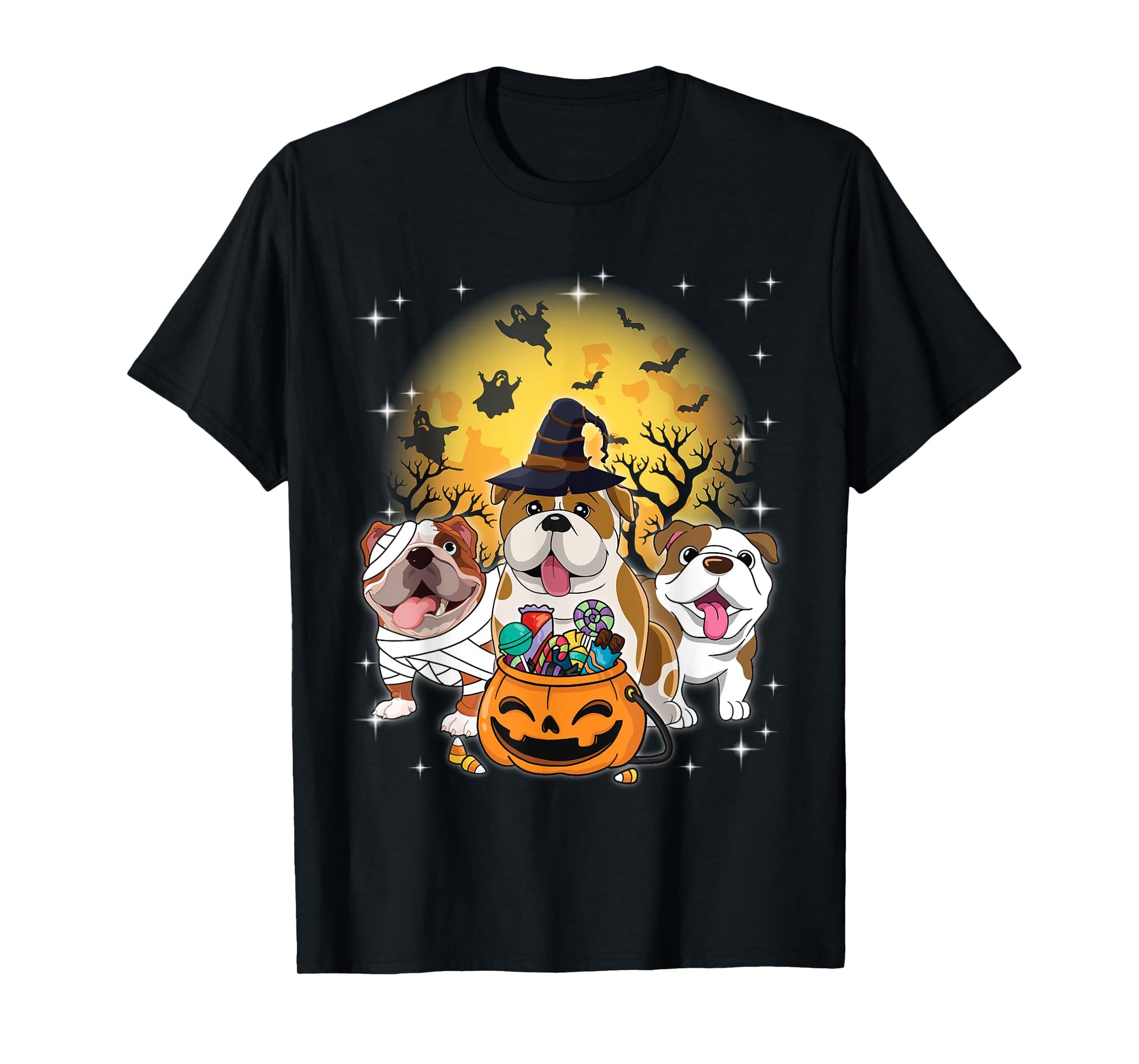 English Bulldog Mummy Witch Dog Moon Ghosts Halloween Day T-Shirt for Men Women Kids