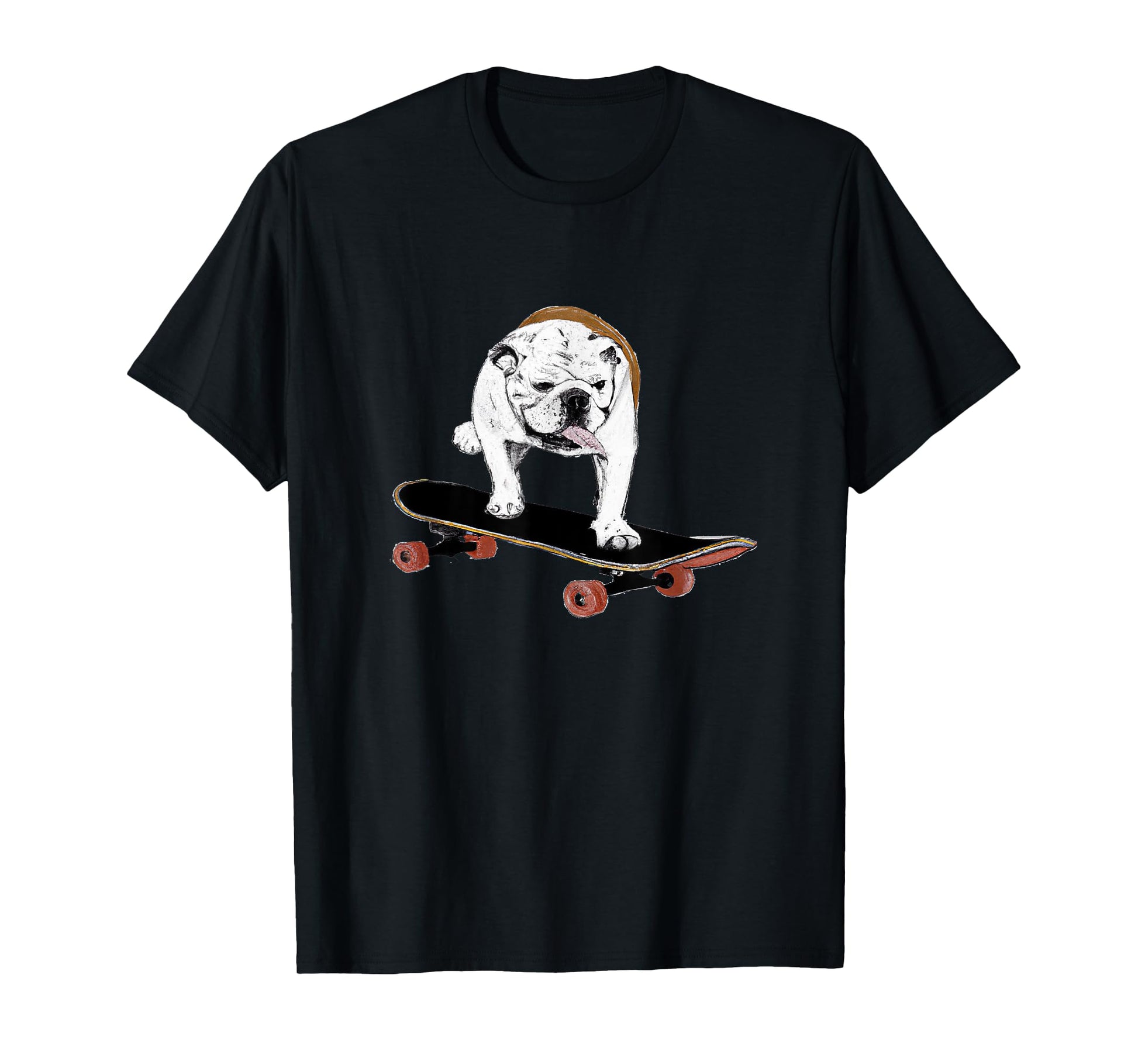 English Bulldog on a Skateboard T-Shirt for Men Women Kids