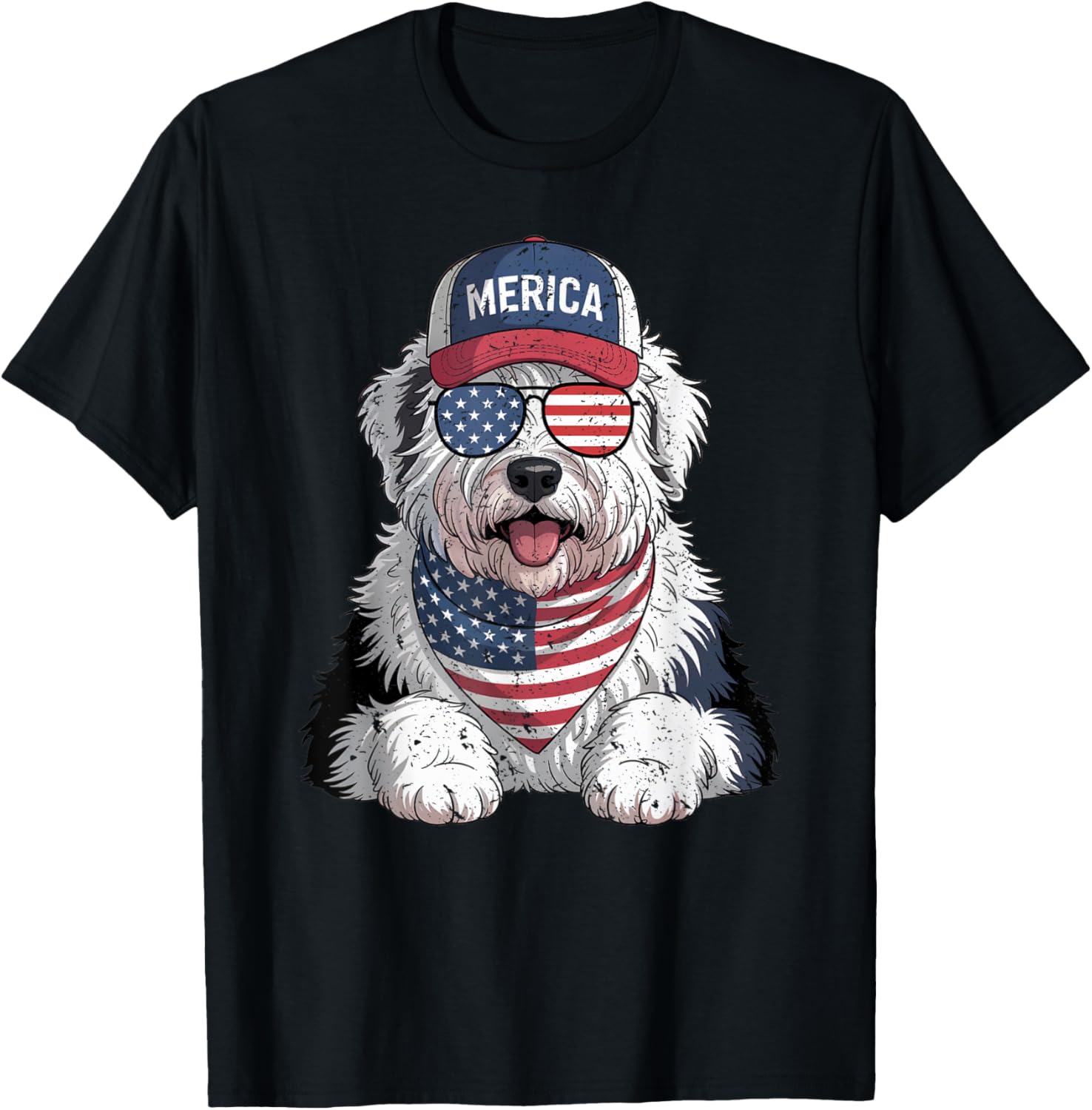 Old English Sheepdog 4th of July US American Flag Patriotic T-Shirt