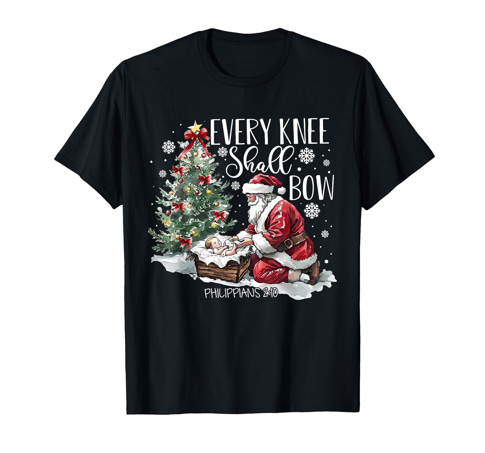 Every Knee Shall Bow Santa Christmas Nativity Scene Xmas T-Shirt