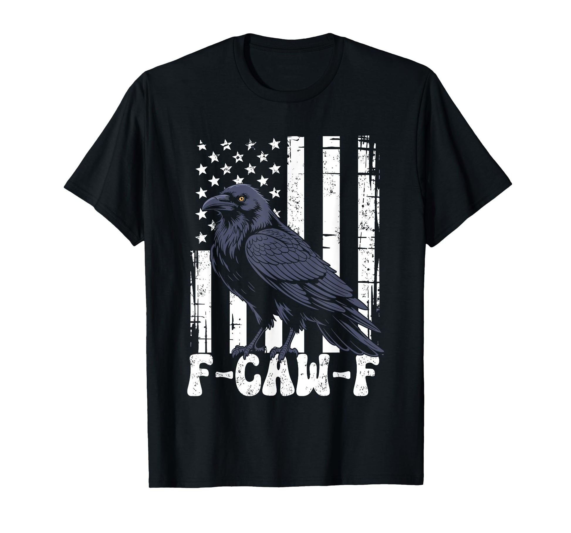 f caw f Black Crow Black Bird Retro USA Flag Vintage F-Caw-F T-Shirt