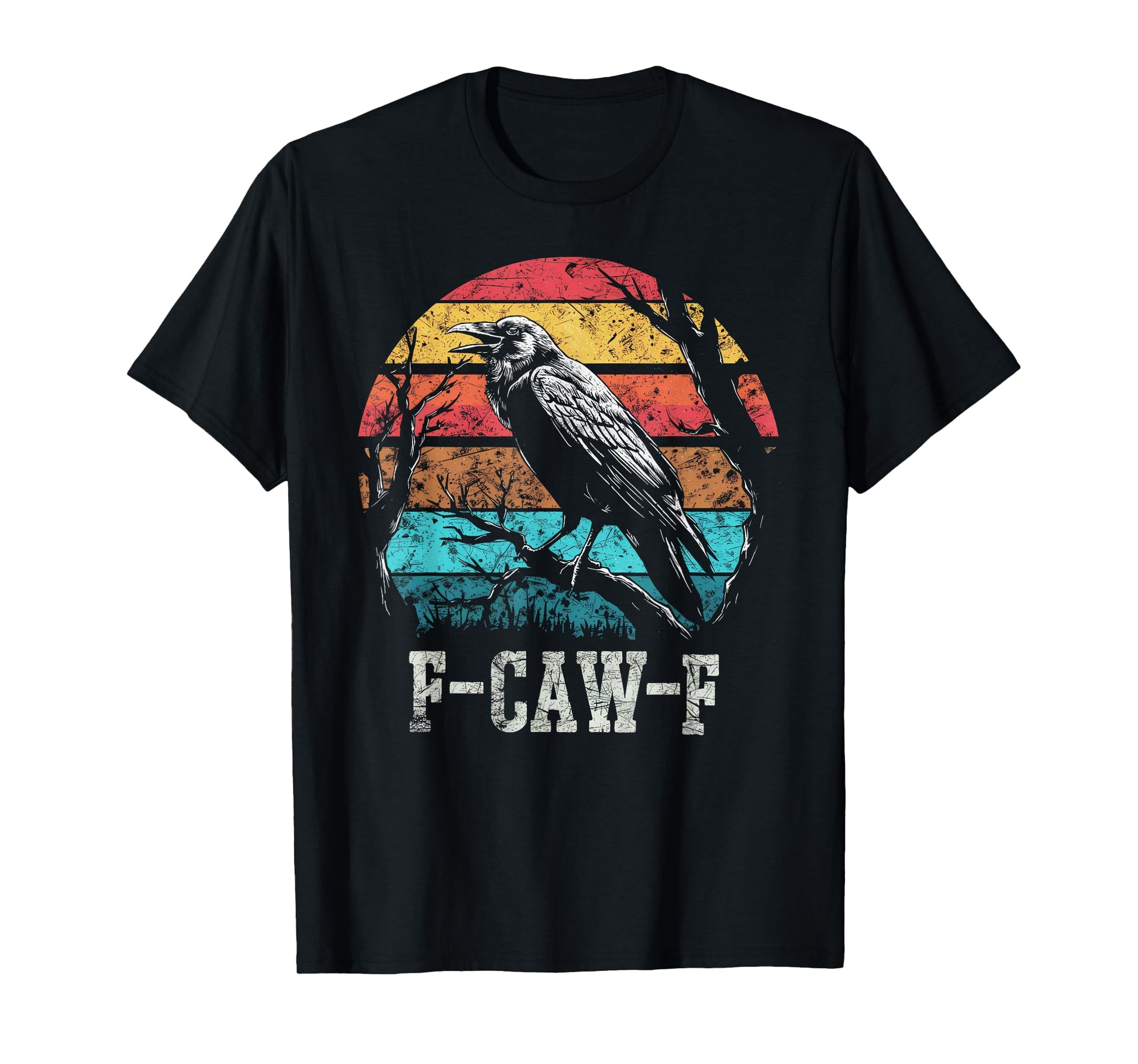 F Caw F Black Crow Retro Sunset Pun Funny Bird Cawing Grunge T-Shirt