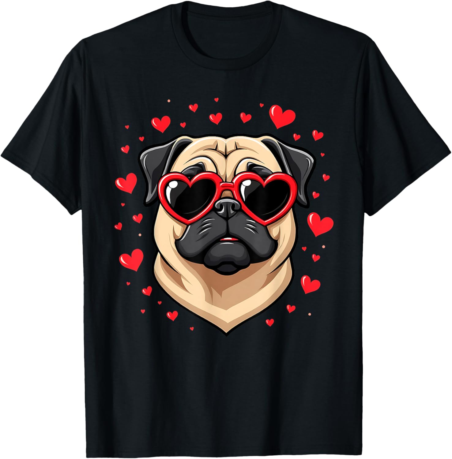 Pug Face Heart Glasses Funny Valentine's Day for Dog Lovers T-Shirt