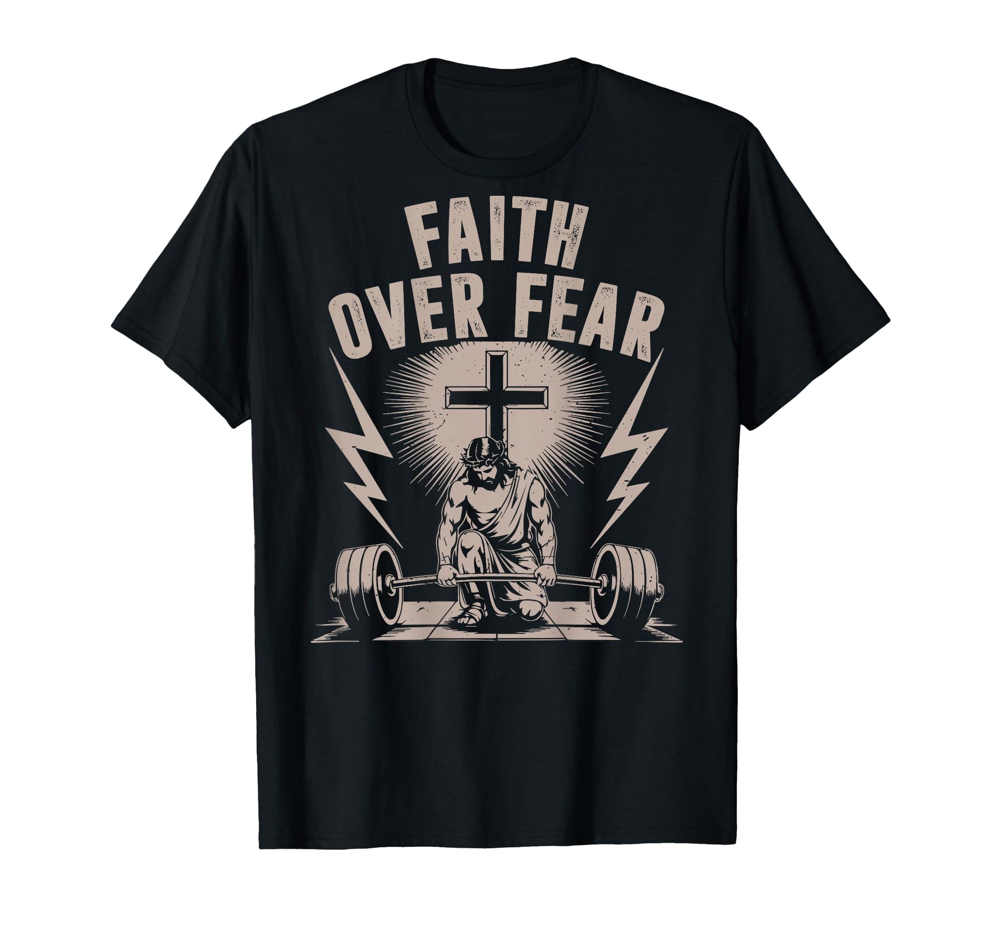 Faith Over Fear Funny Christian Workout Gym Jesus Men Women T-Shirt