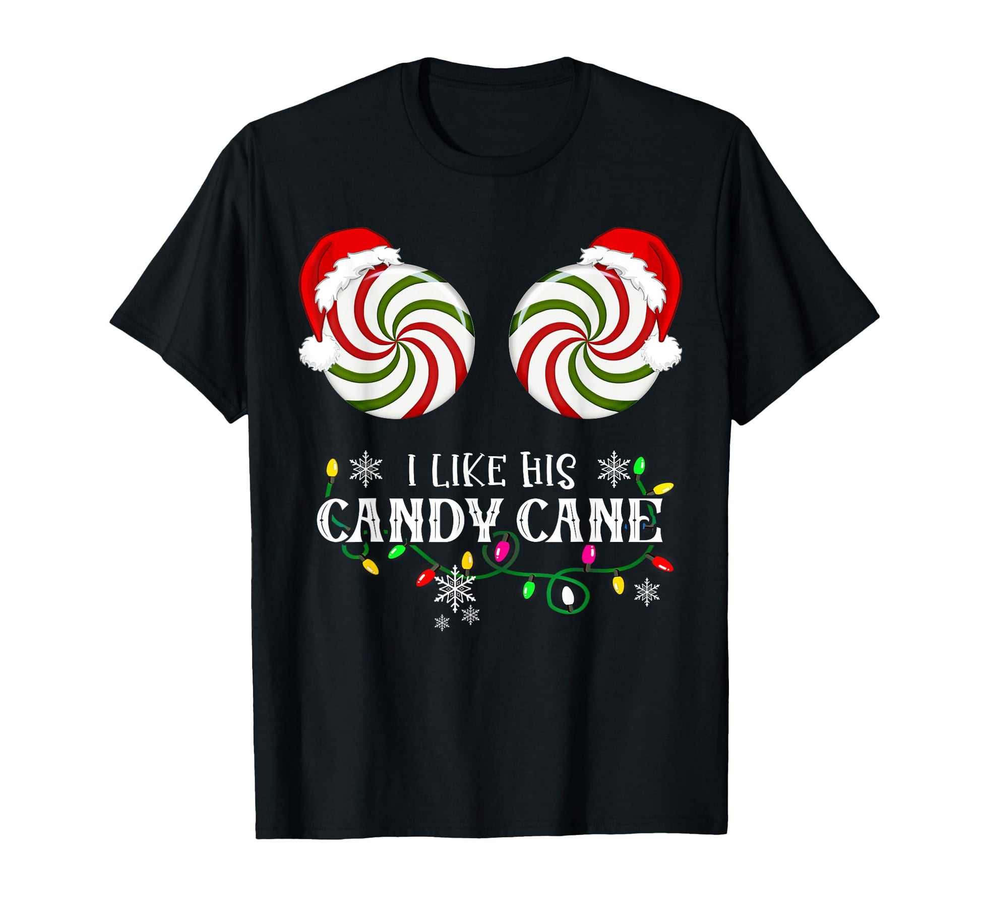 Family Christmas Happy Hallothanksmas I Like His Candy Cane I Like Her Peppermint Candies Unisex-Adults Couples Winter Black Plaid T-Shirt