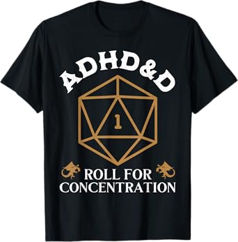 Fantasy Role-Playing Game Custom Vintage ADHD&D Roll For Concentration DnD Unisex-Adult Black Small T-Shirt