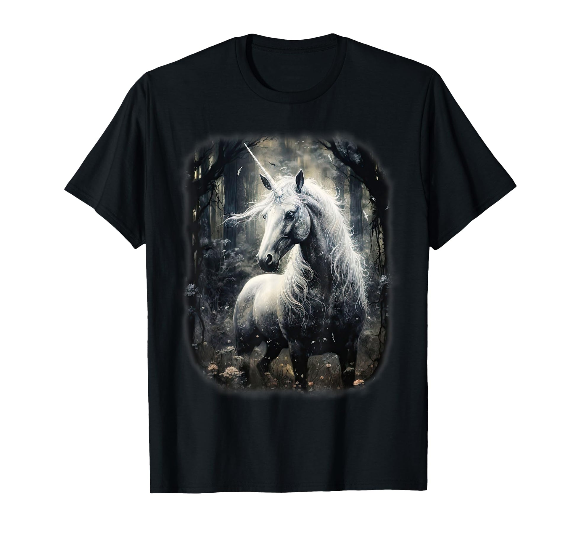 Fantasy white Unicorn standing in a Forest T-Shirt