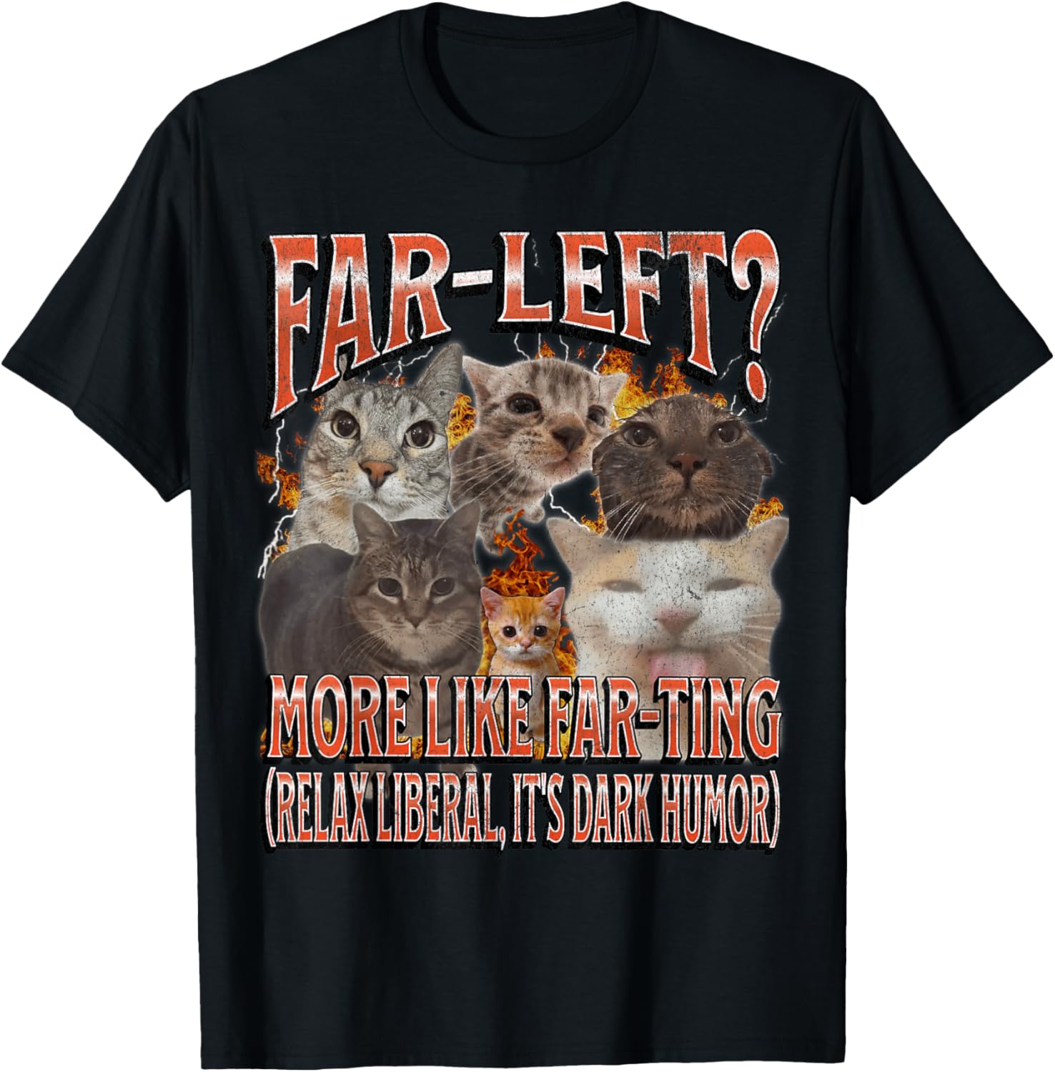 Far Left? More Like Farting Funny Cat Meme Bootleg Graphic T-Shirt