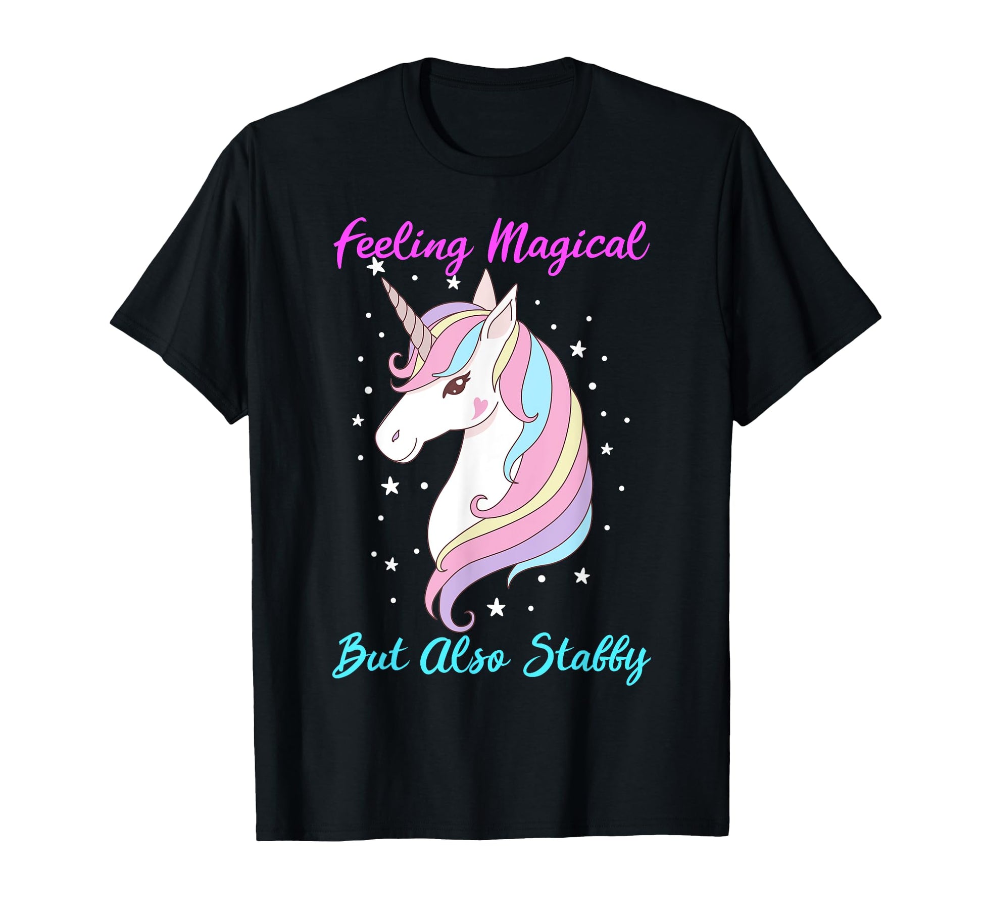 Feeling Magical But Also Stabby Funny Unicorn Rainbow Girls T-Shirt