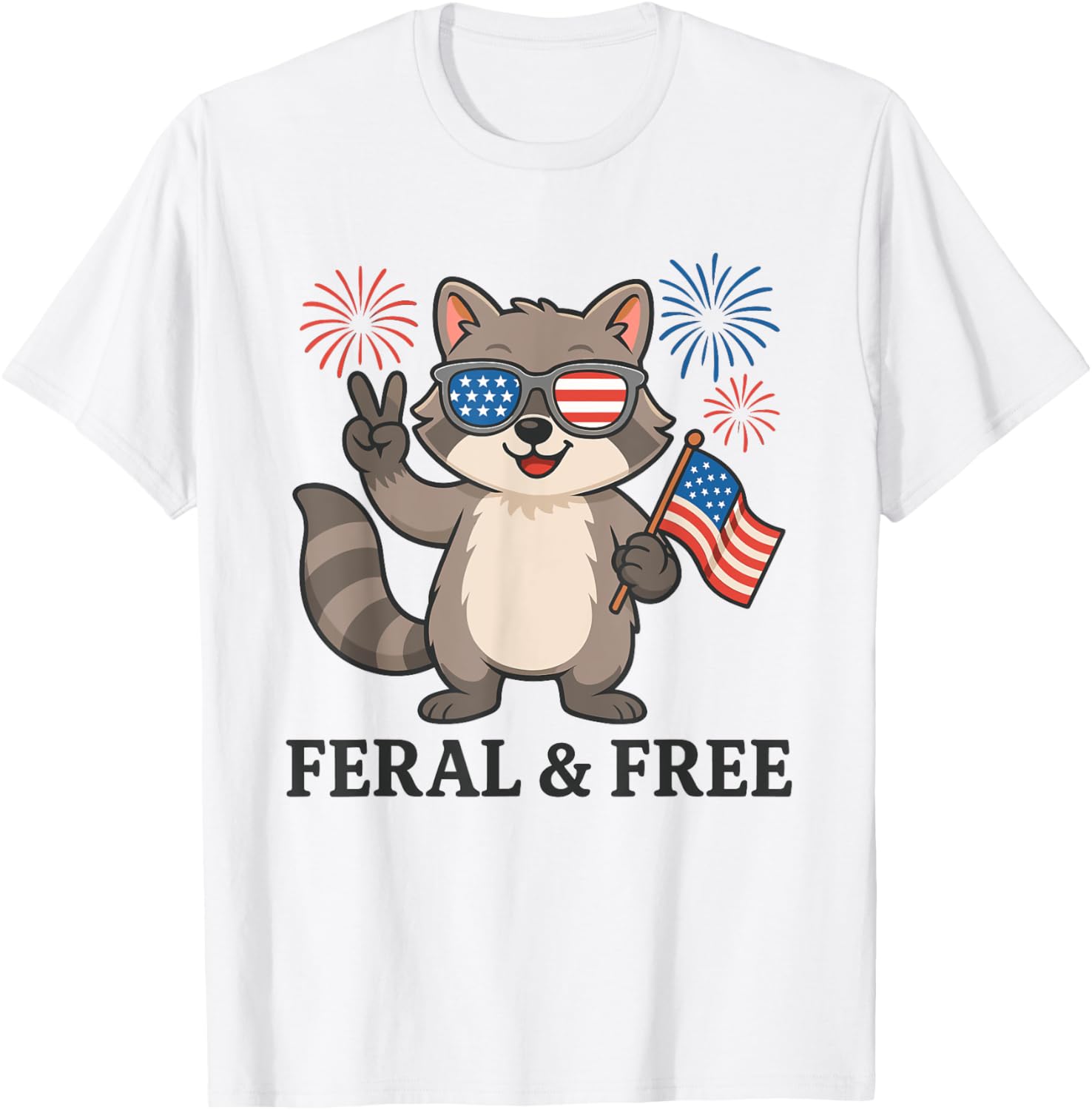Feral and Free Funny Raccoon Patriotic 4th of July T-shirt