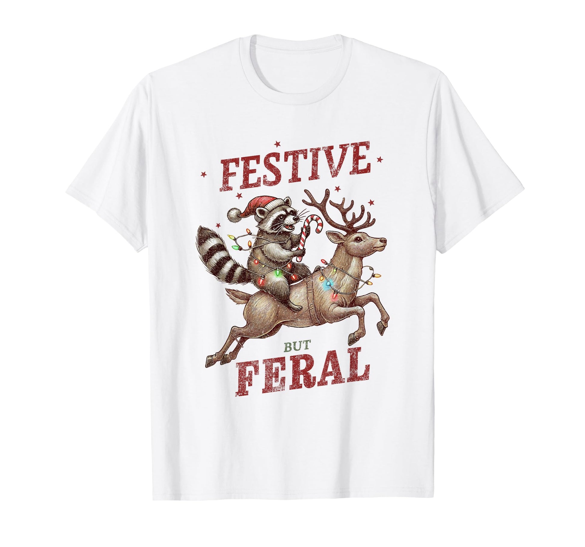 Festive But Feral Xmas Christmas Raccoon T-Shirt