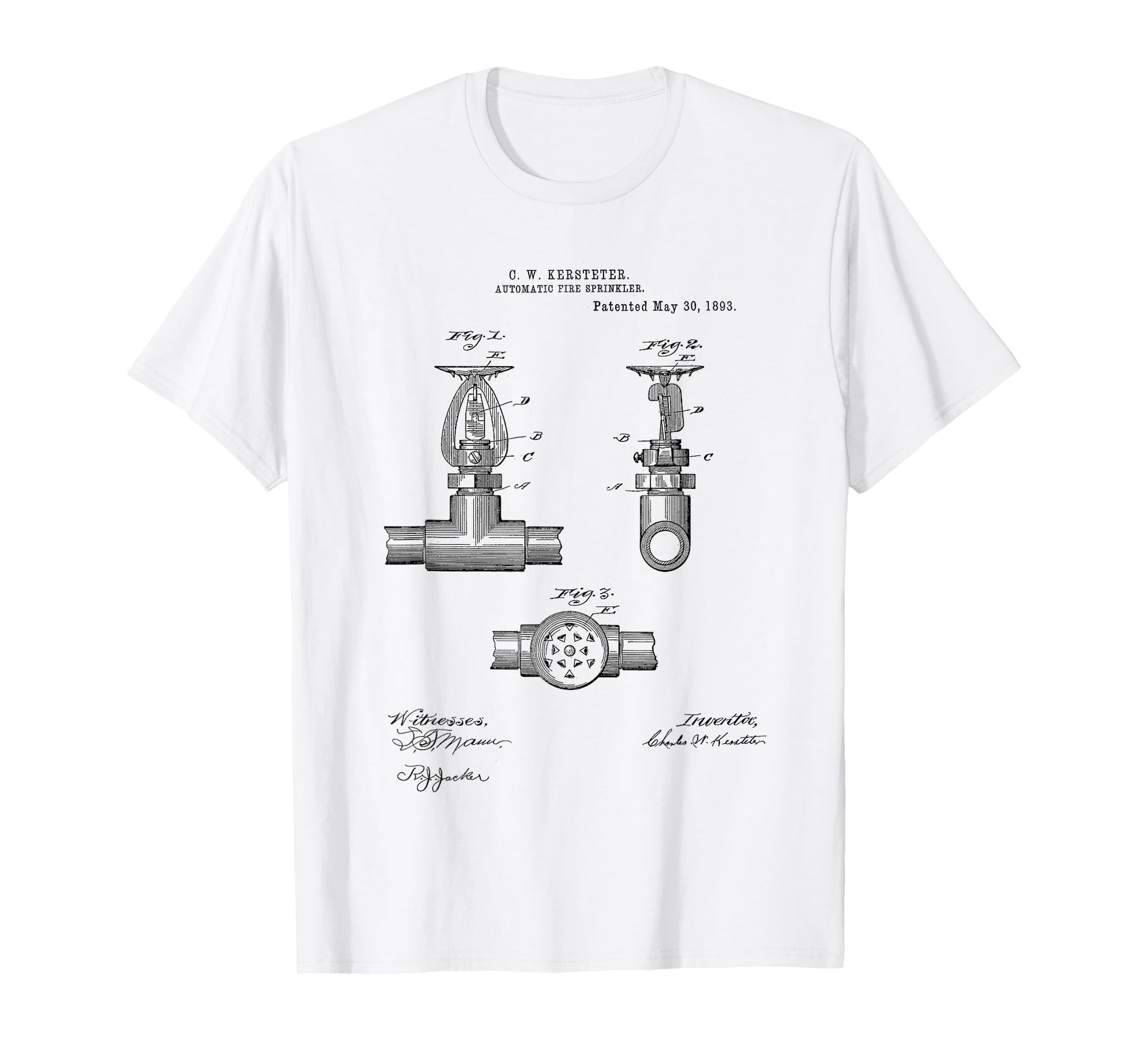 Fire Sprinkler Vintage Patent Hand Drawing Funny Novelty T-Shirt