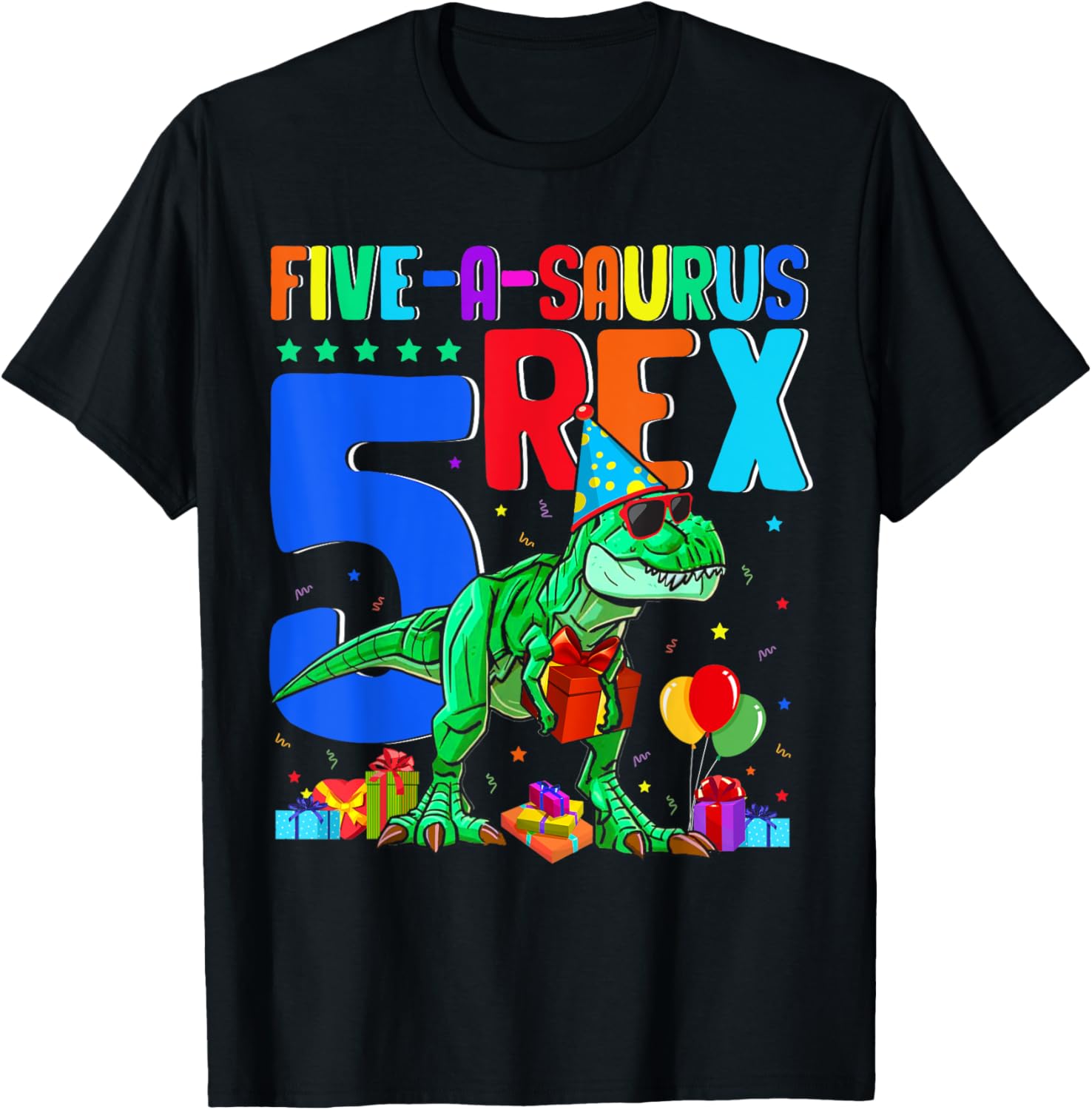 Five-A-Saurus Rex 5th Birthday 5 Years Old T-rex Lover T-Shirt