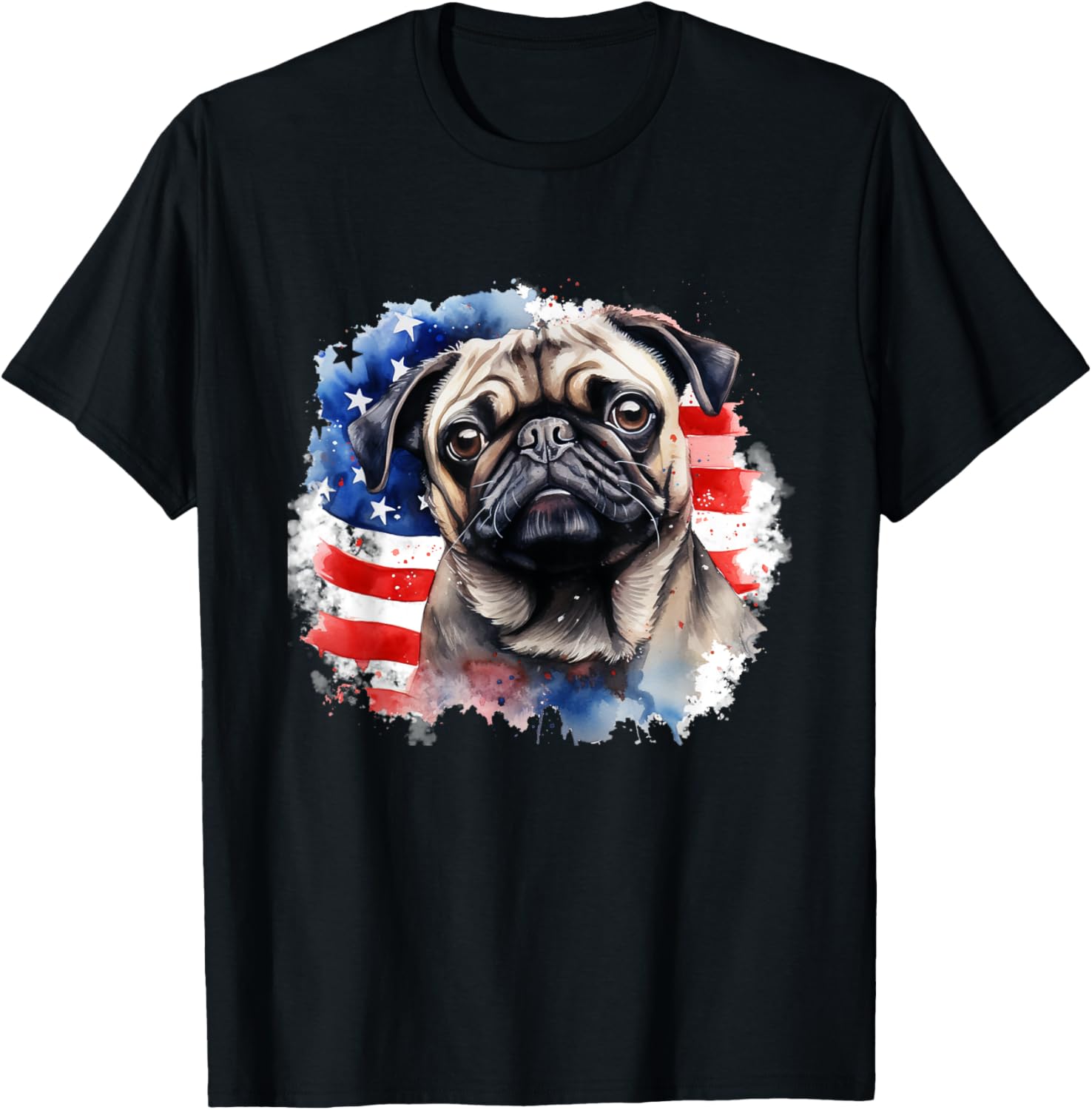 American Flag Pug Dog USA Vintage 4th Of July T-Shirt