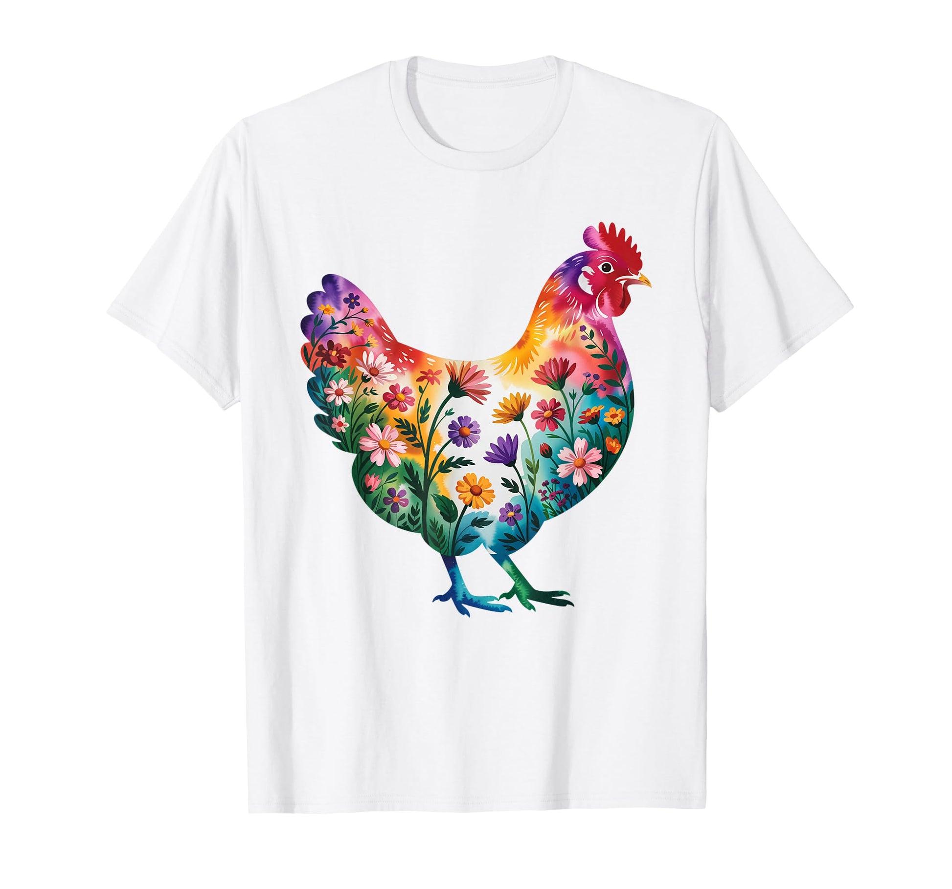 Floral Chicken Art Graphic Farm Chicken Lover Flower Farmer T-Shirt