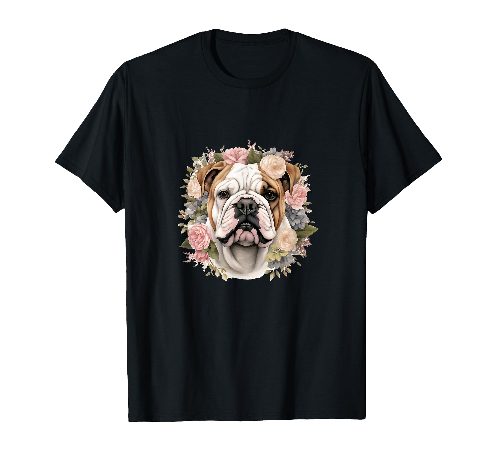 Floral English Bulldog Pastel Flower Border T-Shirt